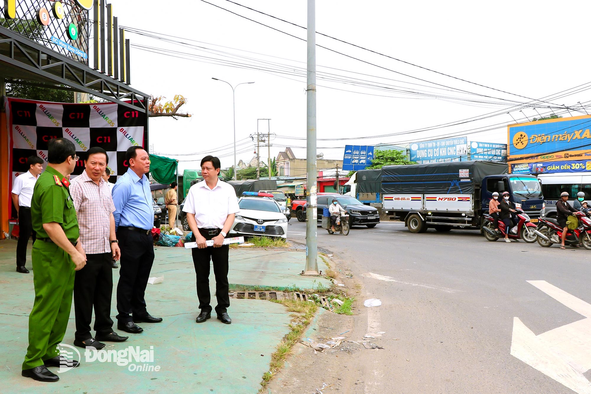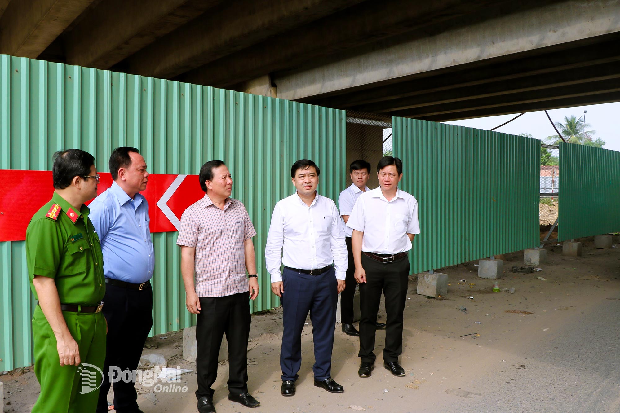 | Ledere i Dong Nai-provinsen undersøkte den nåværende statusen til krysset mellom Vo Nguyen Giap-gaten og Bien Hoa-Vung Tau-motorveien. Foto: Vuong The |