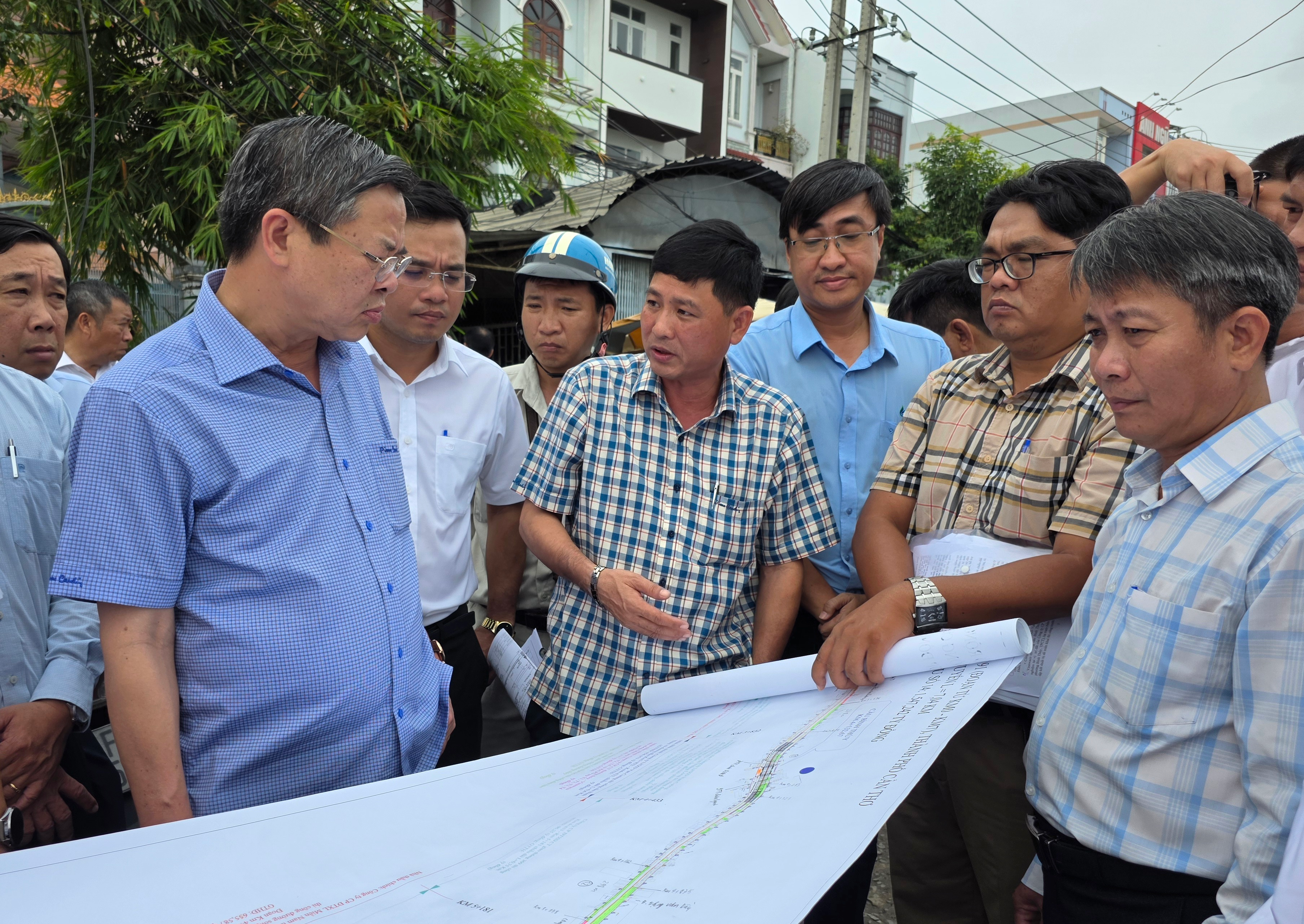 Truong Canh Tuyen (venstre forside), leder av Can Tho bys folkekomité, inspiserte prosjektets fremdrift.