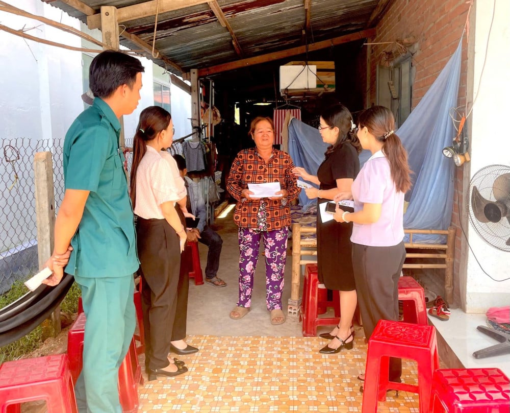 Under besøket spurte, oppmuntret og delte lederne i Duong Minh Chau-kommunen vennlig om vanskelighetene Phats familie sto overfor. Samtidig ga de økonomisk støtte for å hjelpe familien med å ha bedre forhold til å ta vare på og behandle barnet.