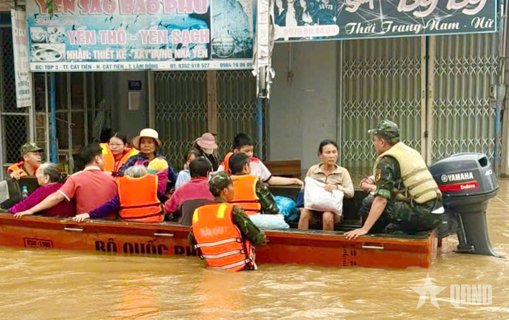 Naturkatastrofesituasjonen er for tiden ekstremt komplisert og farlig, med raskt stigende vannstand og noen steder mer enn 2 meter over veioverflaten. Offiserer og soldater fra Brigade 25 er imidlertid fortsatt der for å hjelpe folk, kontrollere situasjonen, fortsette å koordinere med lokale myndigheter og andre enheter for å rykke ut til redningsaksjoner, støtte folk i å evakuere eiendommer og bringe folk i oversvømte områder i sikkerhet.