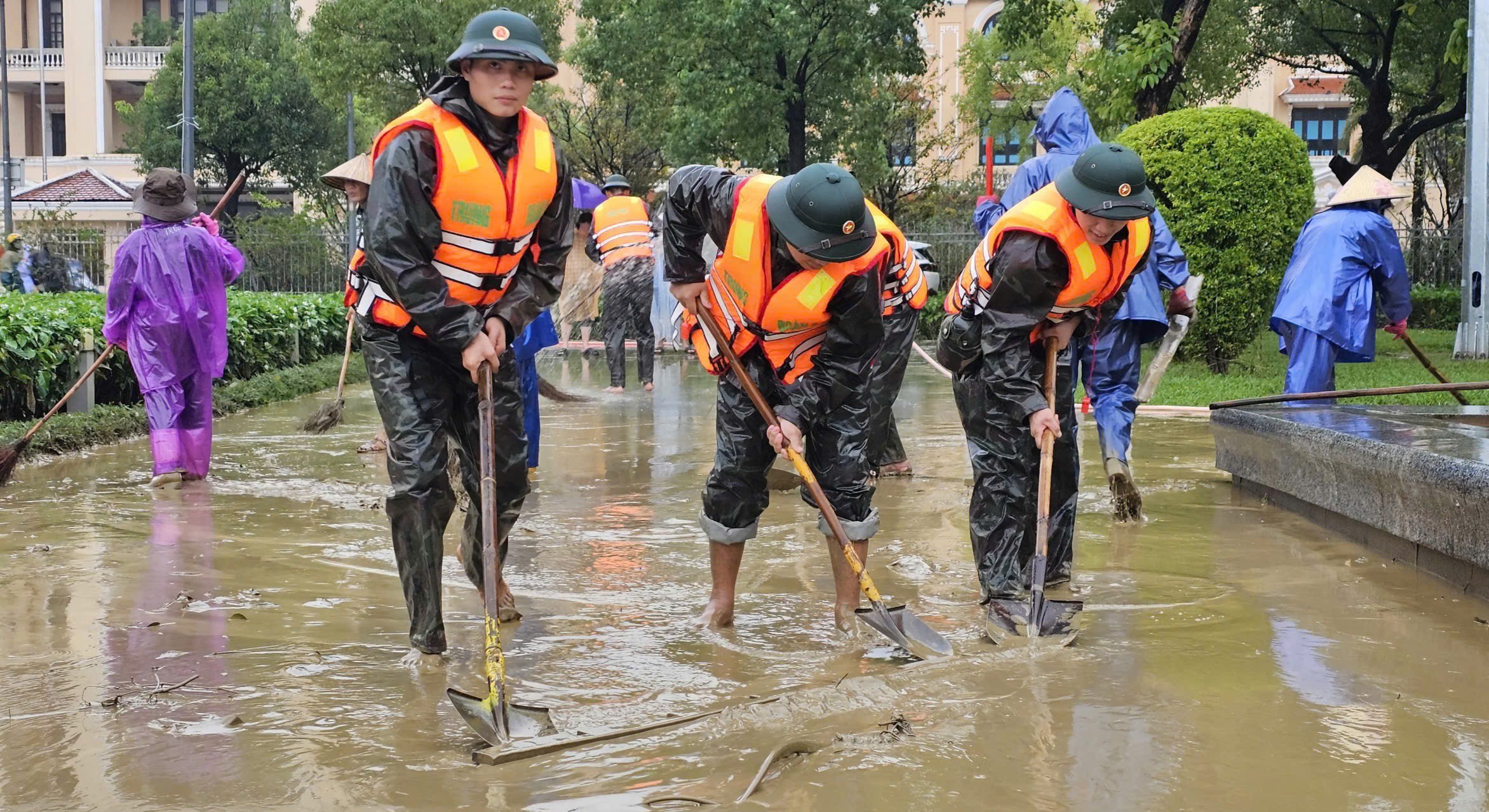 Stilt overfor en slik utvikling ba Hue by enheter og lokaliteter om å mobilisere styrker, kjøretøy og folk raskt for å delta i opprydding av miljøet og gjenopprette dagliglivet så snart vannet trekker seg tilbake. Mottoet som vektlegges er «Der vannet trekker seg tilbake, er det sanitæranlegg», for raskt å gjenopprette et rent og vakkert landskap, sikre miljøsanitæranlegg og forhindre epidemier etter flom.