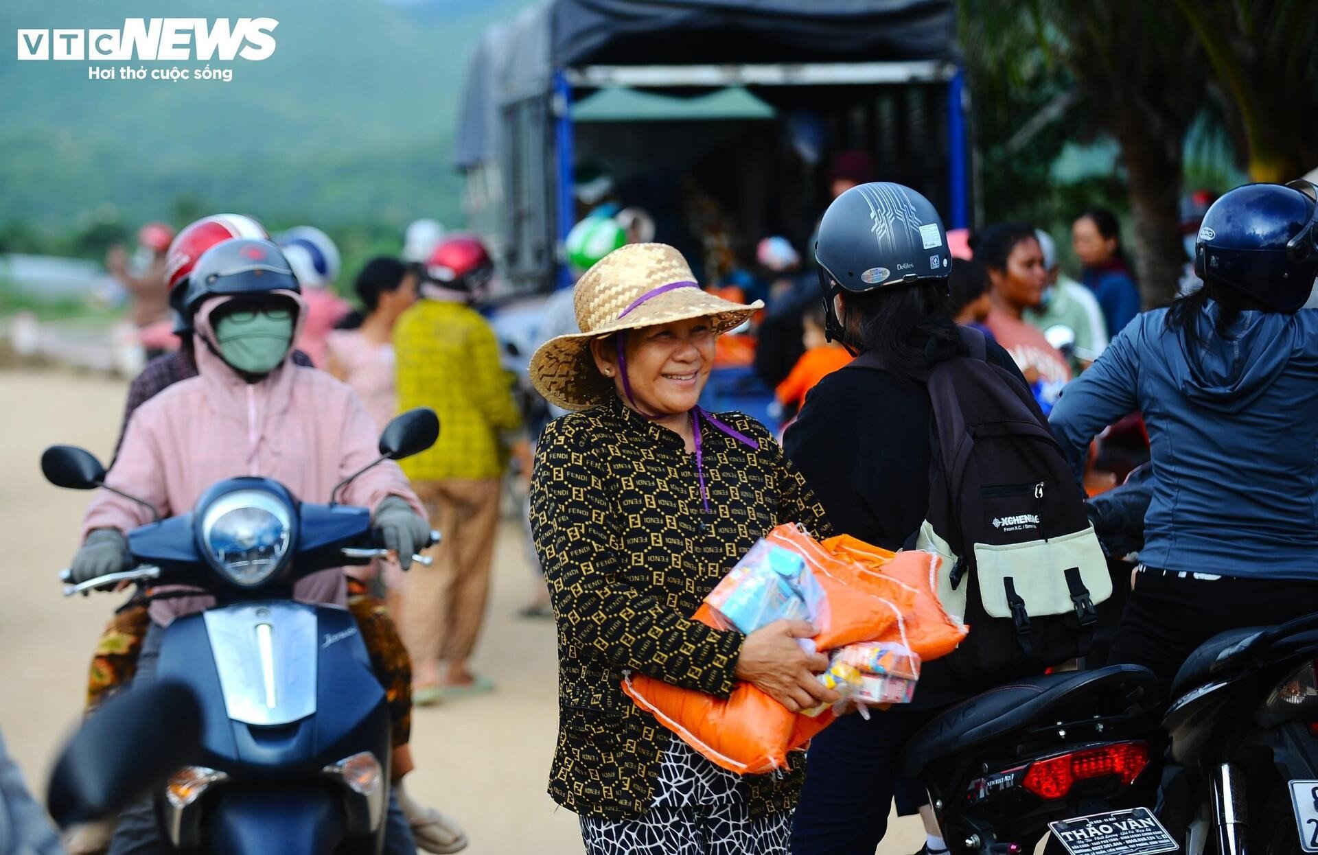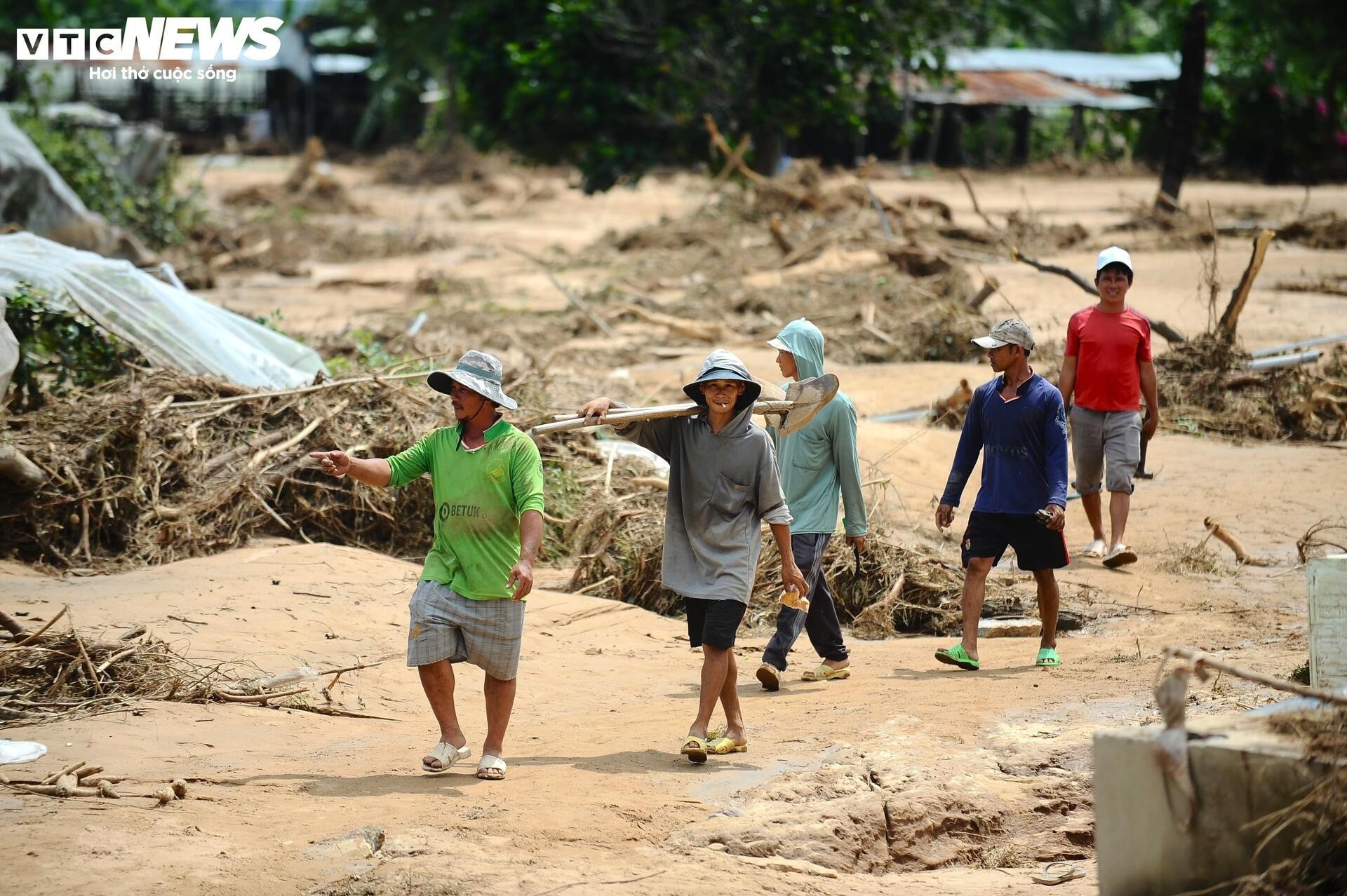 Etter at vannreservoaret på fjellet til Viet Phong Phu Farm Trading Company Limited, som ligger i landsby 1 i Tuy Phong kommune i provinsen, brøt sammen. Lam Dong , hus, møbler, eiendommer ... tilhørende folk ved foten av fjellet ble revet med og begravet av den voldsomme flommen. Folk her støttet og hjalp hverandre med poser med ris og pakker med nudler for å overvinne katastrofen sammen.