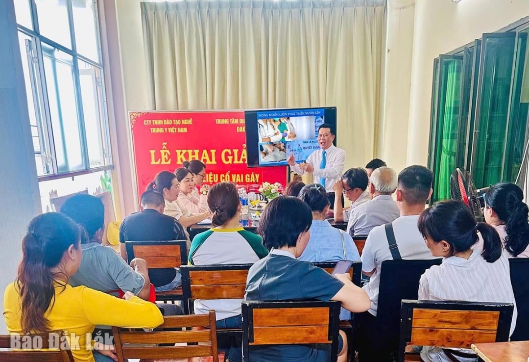 | Dak Lak provinsielle arbeidsformidlingssenter åpner et yrkesopplæringskurs i nakke- og skulderbehandling for arbeidstakere som mottar dagpenger. Foto: Nguyen Tham |