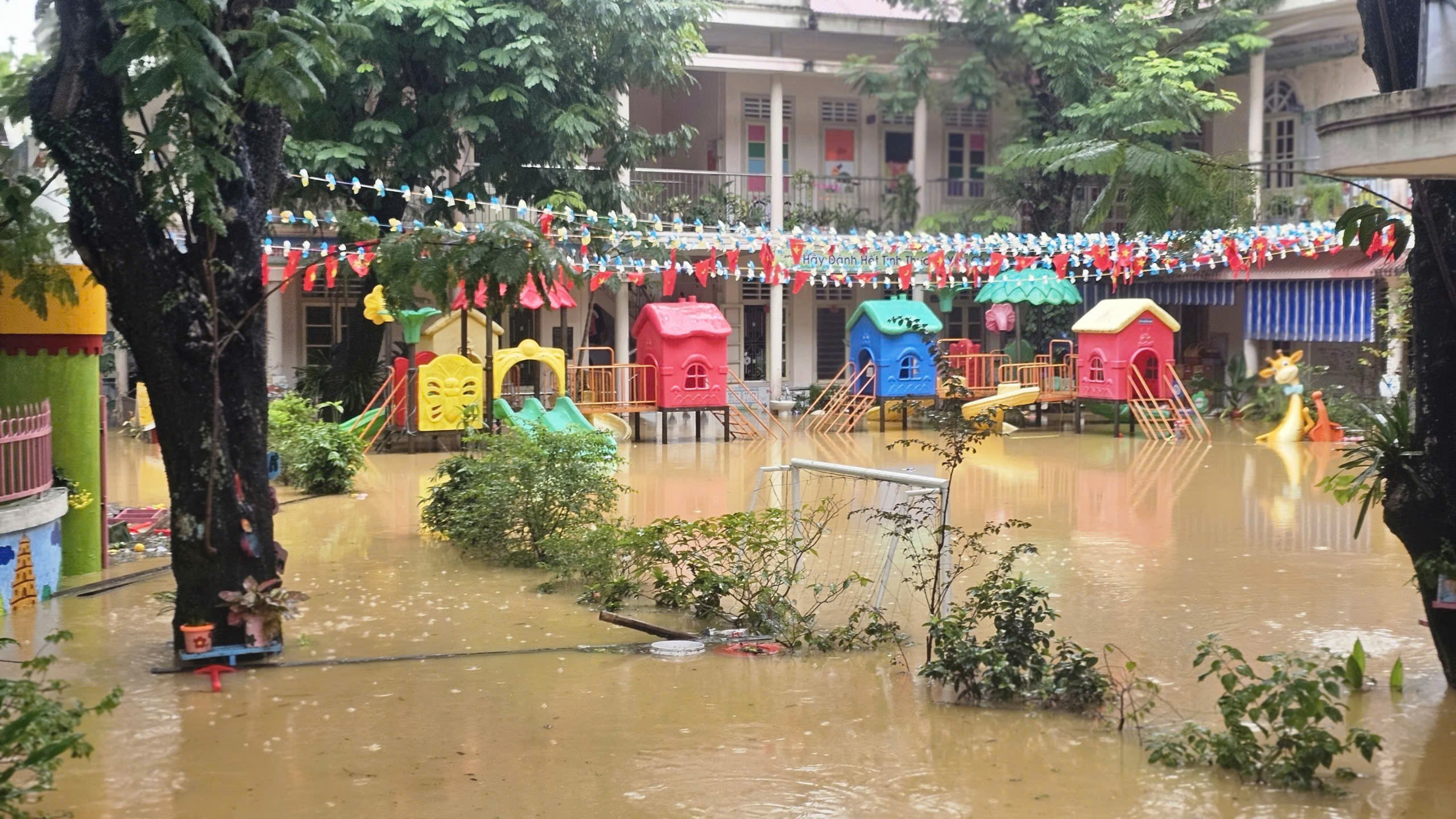 Tay Loc barnehage (Phu Xuan-distriktet) er fortsatt oversvømt til en dybde på omtrent 1,2 meter. |