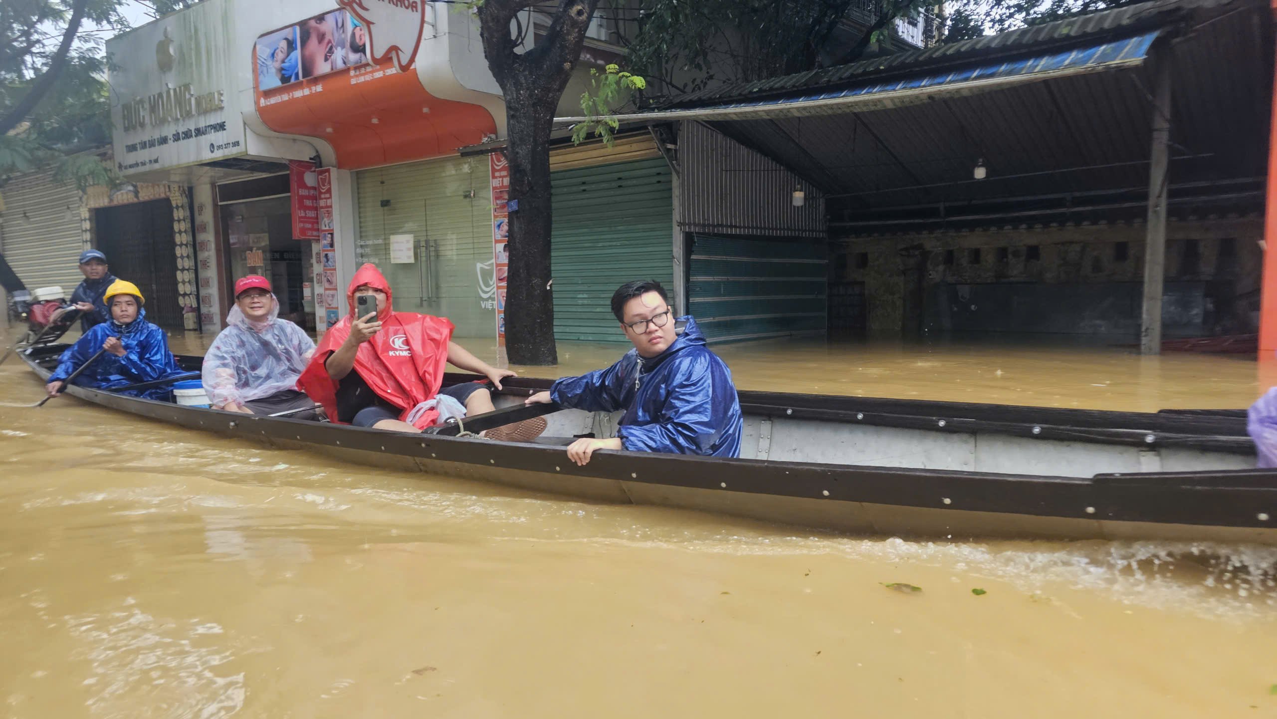 Reise med motorbåt i Nguyen Trai-gateområdet (Phu Xuan-distriktet) på grunn av dyp flom |