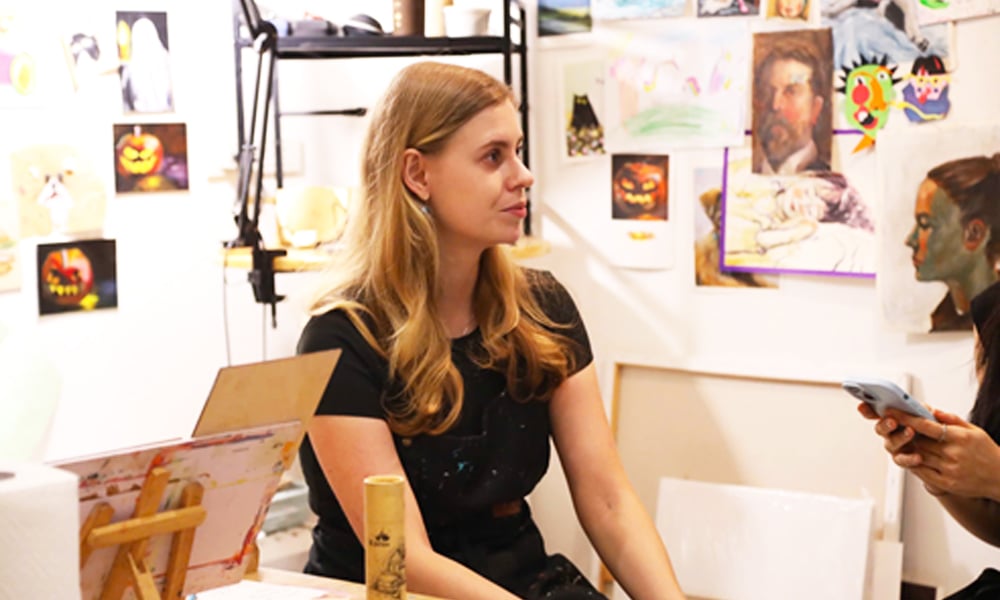 «Jeg ønsket å lage et verksted for folk som meg, som ikke bare ønsker å lære å tegne, men også ønsker å møte og få kontakt med andre gjennom kunst» – Marta deler grunnen til at hun grunnla BRUSH Studio. |