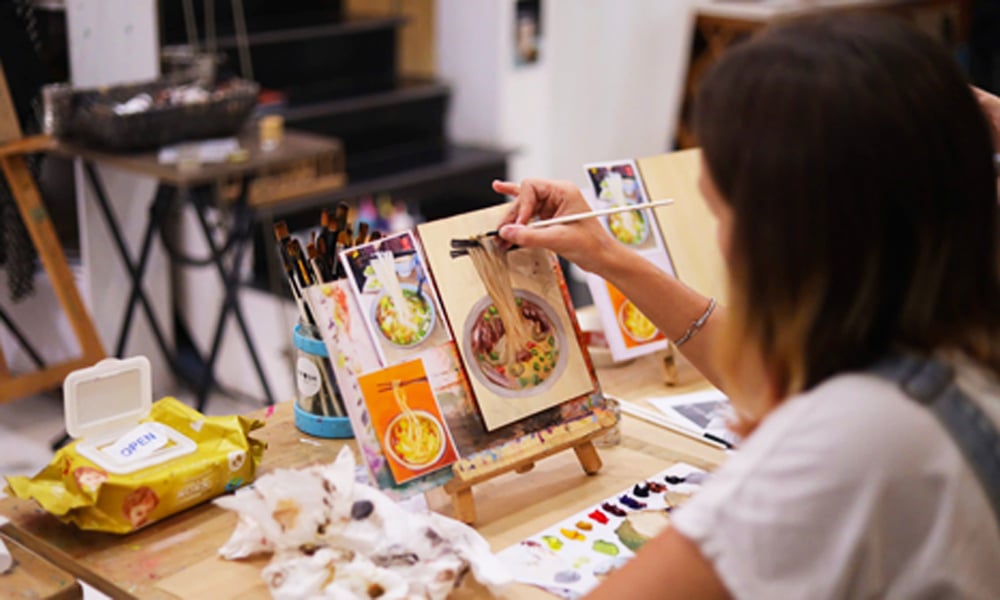 Malerier gjennomsyret av vietnamesisk identitet i BRUSH Studio-verksteder. |