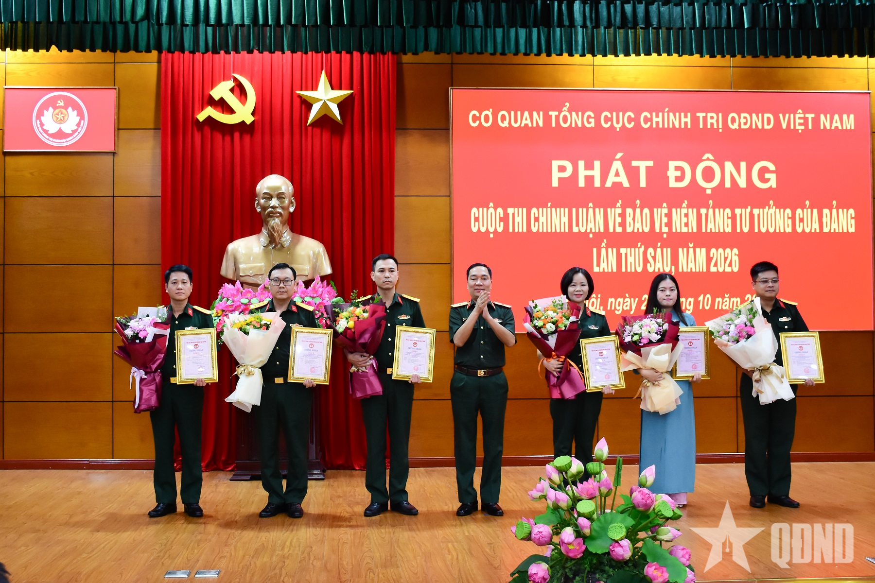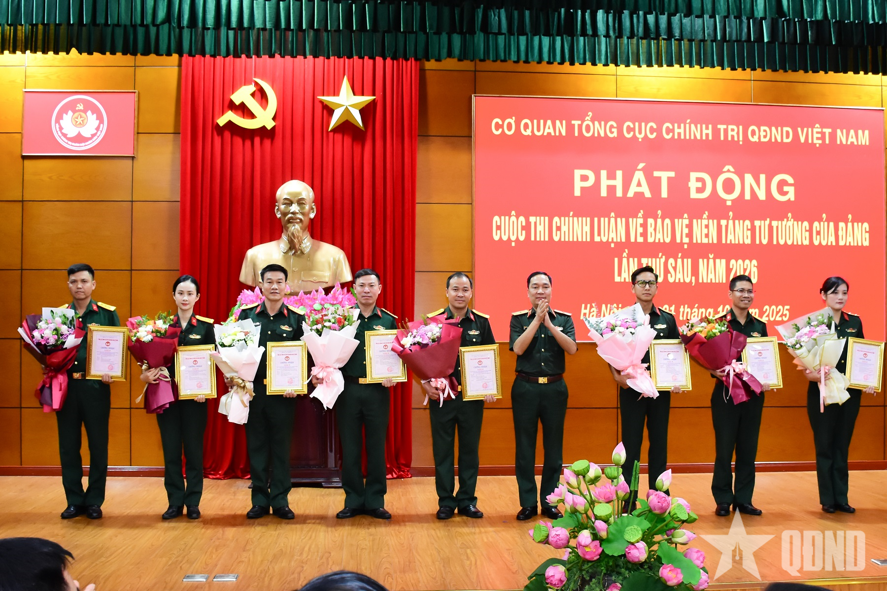 Til stede og ledet seremonien var generalmajor Tran Ngoc Anh, visesekretær for partikomiteen i den generelle avdelingen for politikk , direktør for den politiske avdelingen, nestleder for den stående komiteen i styringskomité 35 i partikomiteen i den generelle avdelingen for politikk. Også til stede var ledere og sjefer for etater og enheter under den generelle avdelingen for politikk; forfattere, forfattergrupper, kollektiver og enkeltpersoner som vant store premier i den femte konkurransen.
