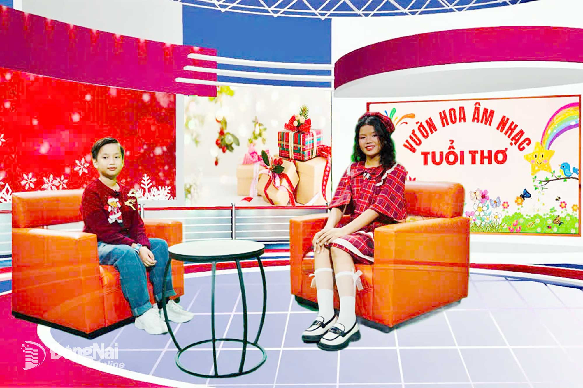 | Konferansierene Chau Phat og Thao Nguyen møter publikum i programmet «Children's Music Garden» med temaet «Julemirakel» i Studio S1 til Dong Nai Newspaper og Radio & Television. Foto: Xuan Phu |