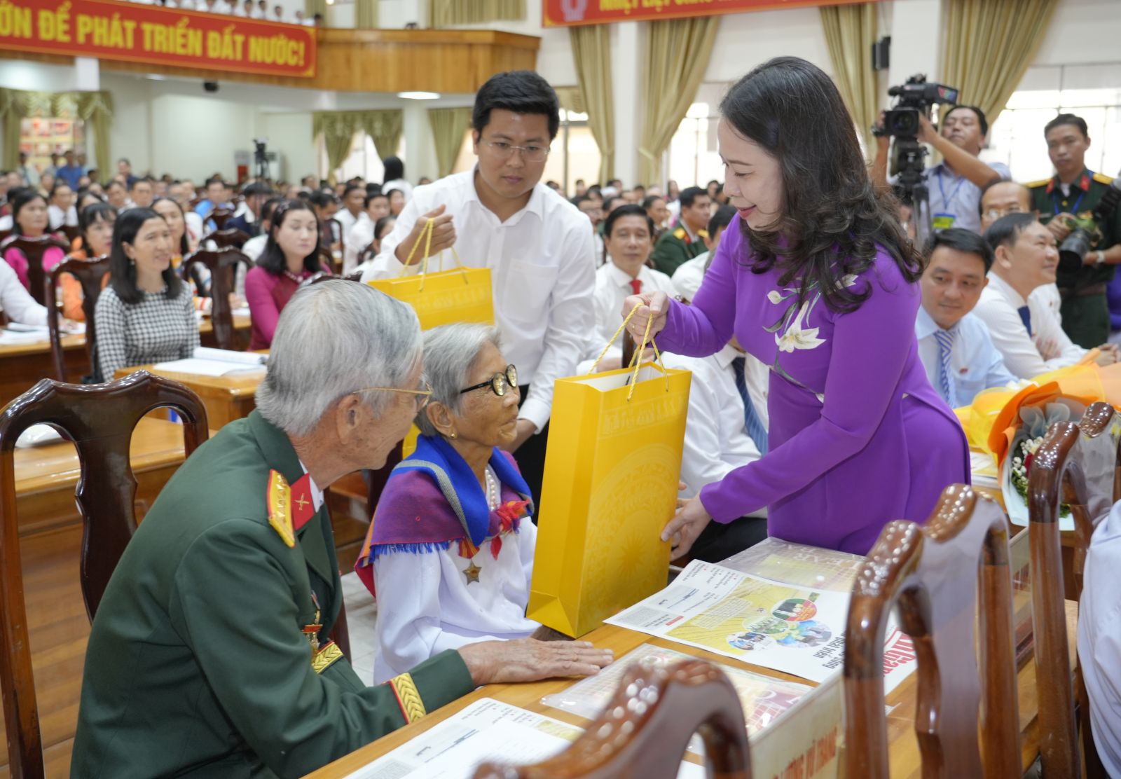 Visepresidenten overrekker gaver til vietnamesiske heroiske mødre på kongressen. Foto: VPCTN