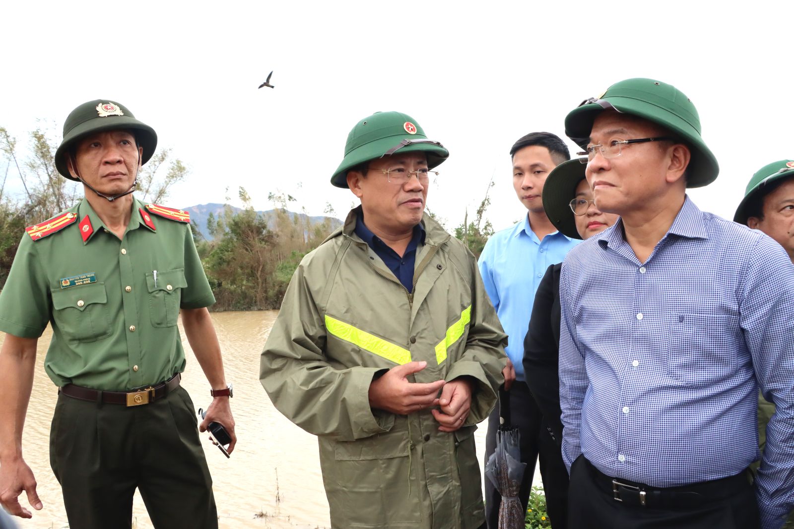 Visestatsminister Le Thanh Long og arbeidsdelegasjonen inspiserte skadesituasjonen i landsbyen Luat Le i Tuy Phuoc kommune.