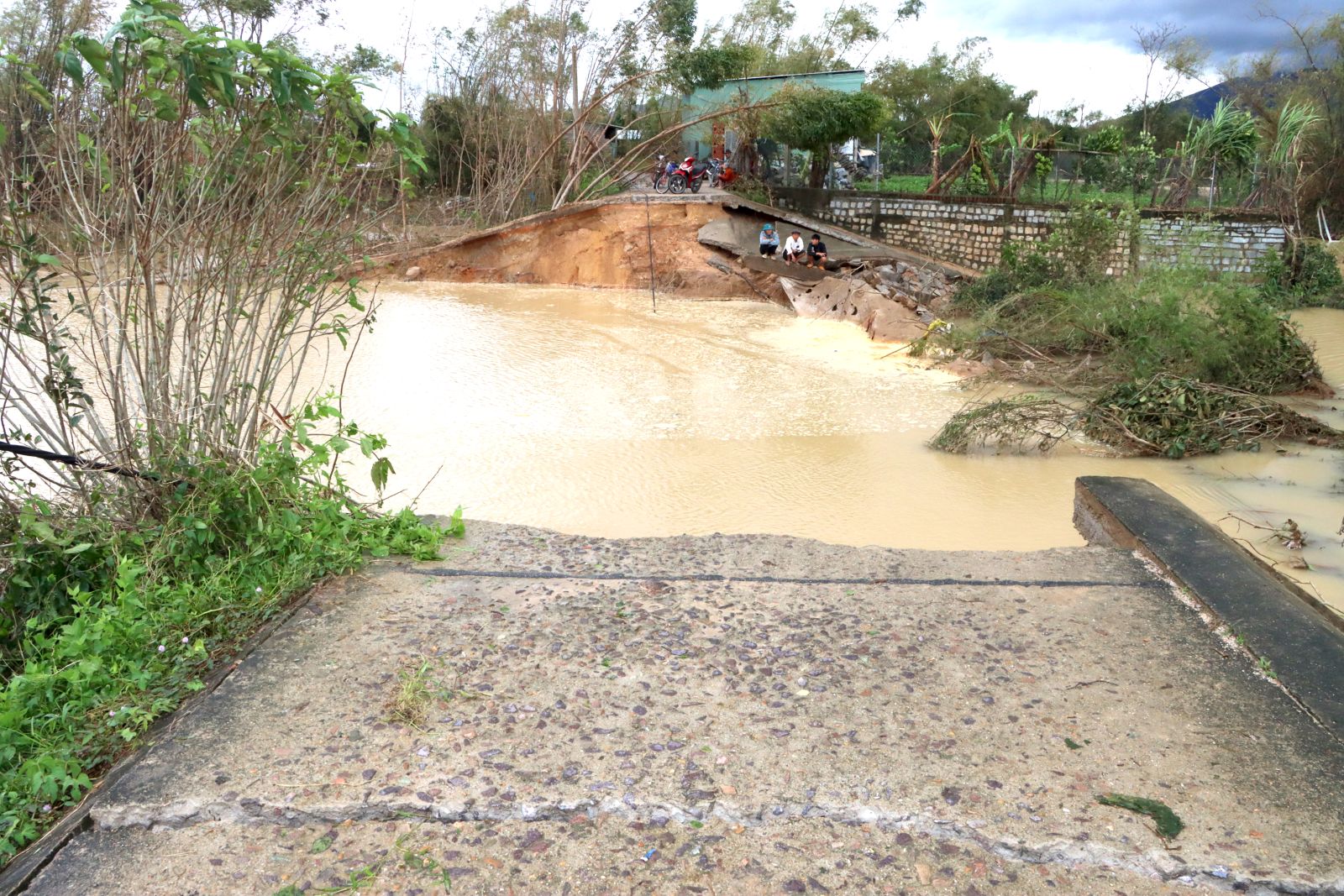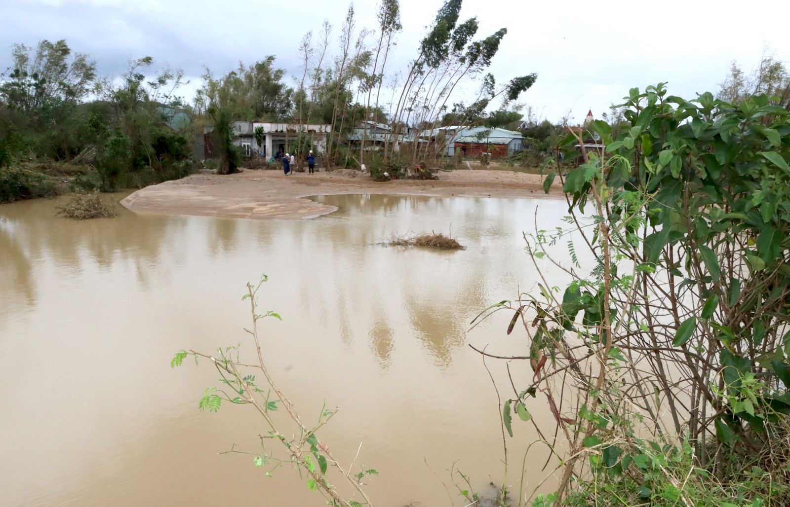 Kraftig regn og flom fra oppstrøms elv brøt Luat Le-elvediken og isolerte boligområder.