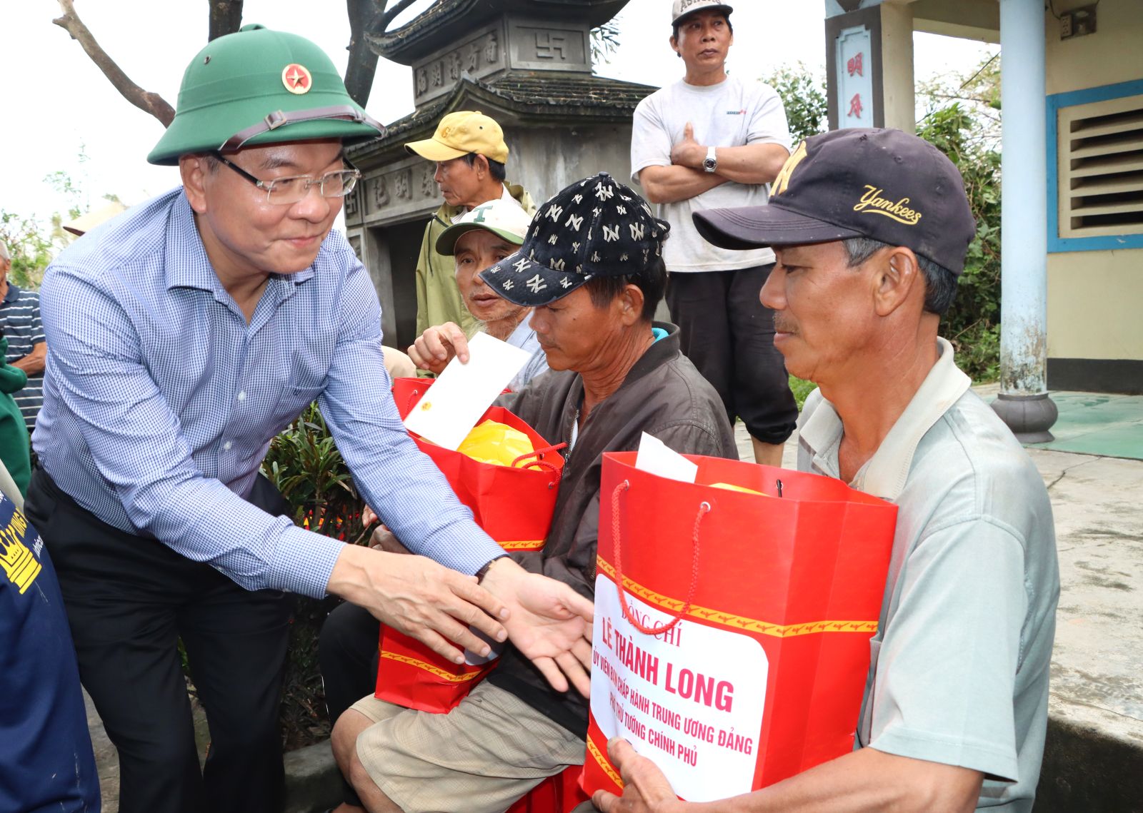 Før arbeidsmøtet besøkte visestatsminister Le Thanh Long landsbyen Luat Le i Tuy Phuoc kommune, delte informasjon om og oppmuntret folk til å overvinne vanskeligheter og raskt stabilisere livene sine. Visestatsministeren satte stor pris på de proaktive og drastiske tiltakene fra lokale myndigheter i forbindelse med naturkatastrofer, spesielt med å evakuere folk til trygge steder, og folks samarbeid om å overholde regjeringens evakueringspolitikk. Dermed bidro han til å minimere skadene forårsaket av naturkatastrofer i provinsen.