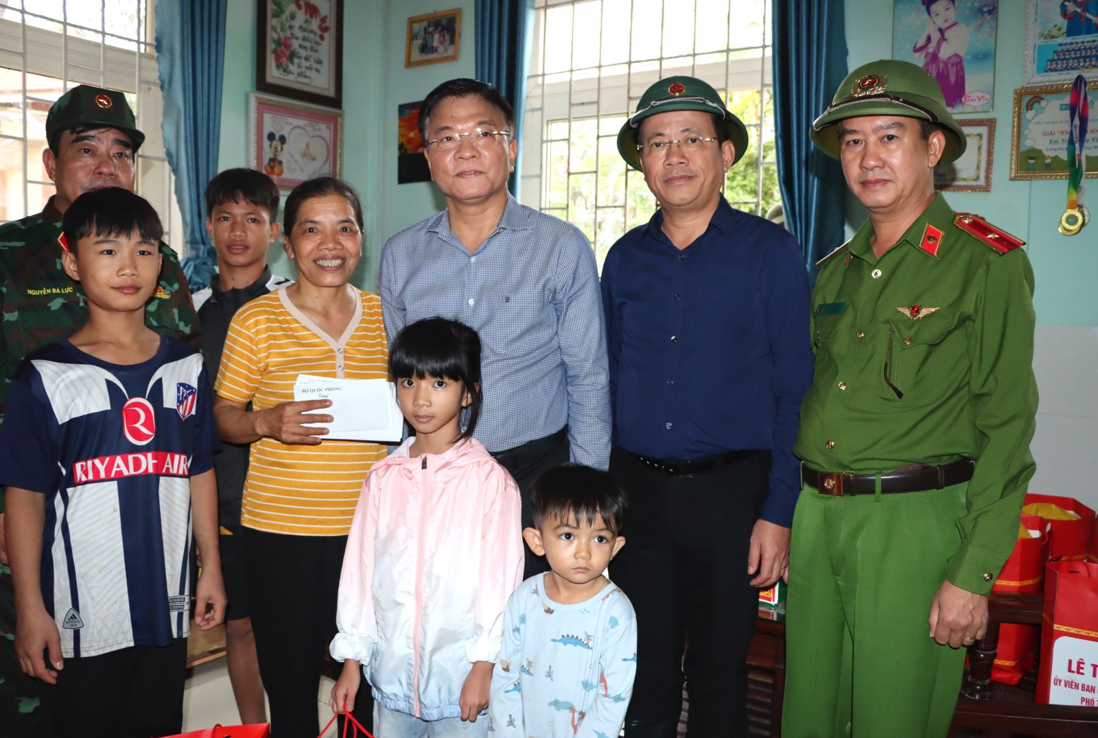 Visestatsminister Le Thanh Long og provinsielle ledere overrakte gaver og oppmuntret mennesker som var rammet av flommen.