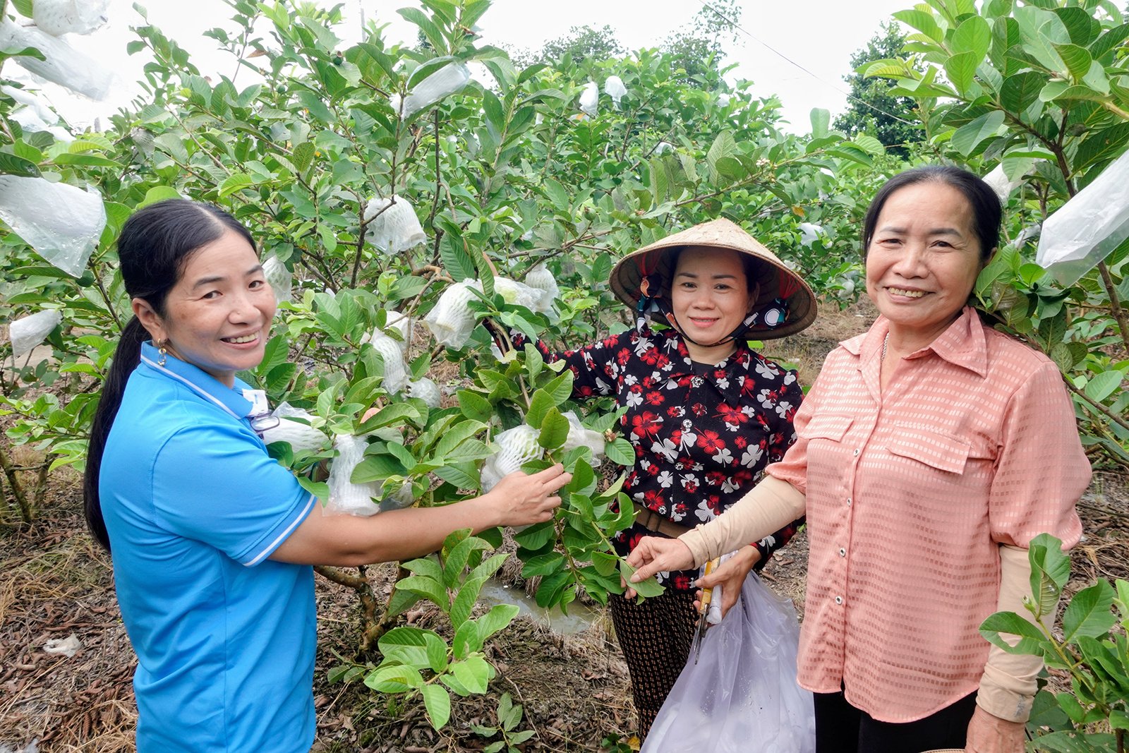 Midt i den frodige, grønne dronningguavahagen i Hamlet 8 i Giong Rieng kommune plukket fru Le Nguyen Minh Trang (45 år gammel) frukt og fortalte om sin karrierevei. Tidligere dyrket hun mango og dragefrukt, men med lav effektivitet. I 2017 gikk hun over til å dyrke guava. I starten hadde hun bare 30 trær. Siden frukten var deilig og lett å selge, utvidet hun gradvis til 500 trær. I 2021, takket være kommunens kvinneforenings støtte med et lån på 100 millioner VND, kunne hun utvide produksjonen. «Guava er lett å dyrke, har få skadedyr og sykdommer, og kan dyrkes i 6 måneder for å produsere frukt for salg hele året. Guavahagen min høstes hver 10. dag, med en salgspris på 15 000 VND/kg, noe som gir en fortjeneste på over 100 millioner VND/år, nok til å støtte barnas utdanning og stabilisere livet mitt», sa fru Trang begeistret.