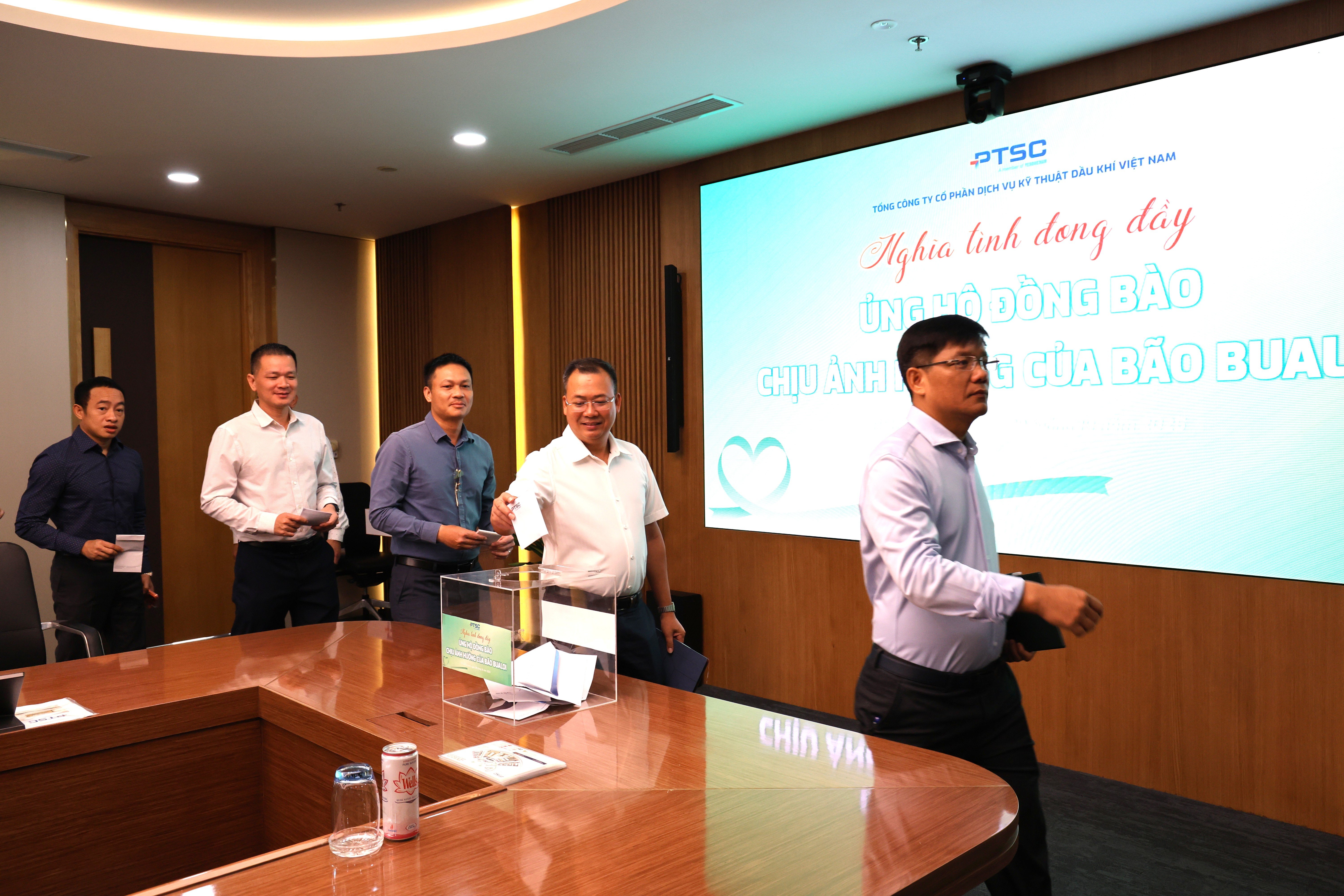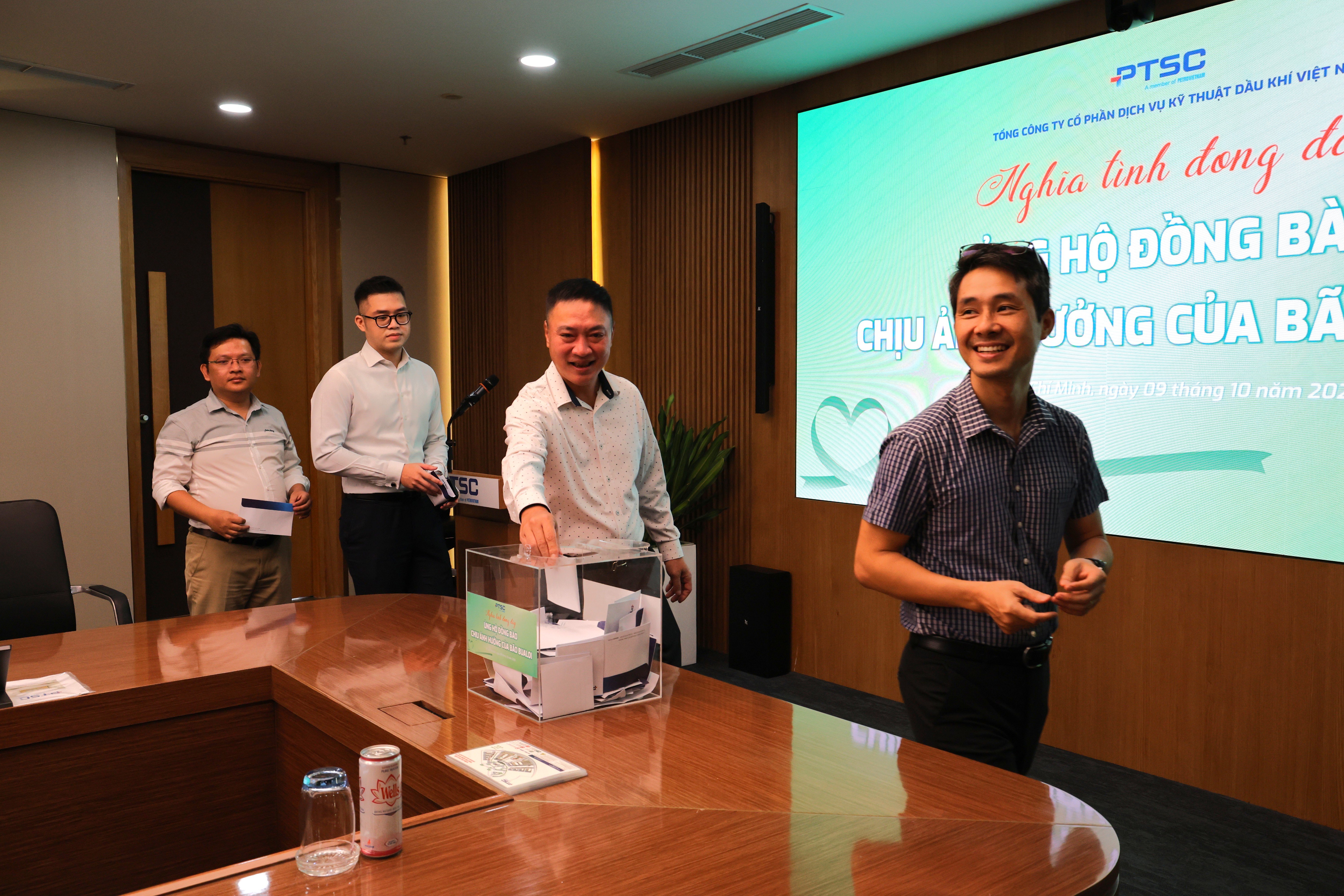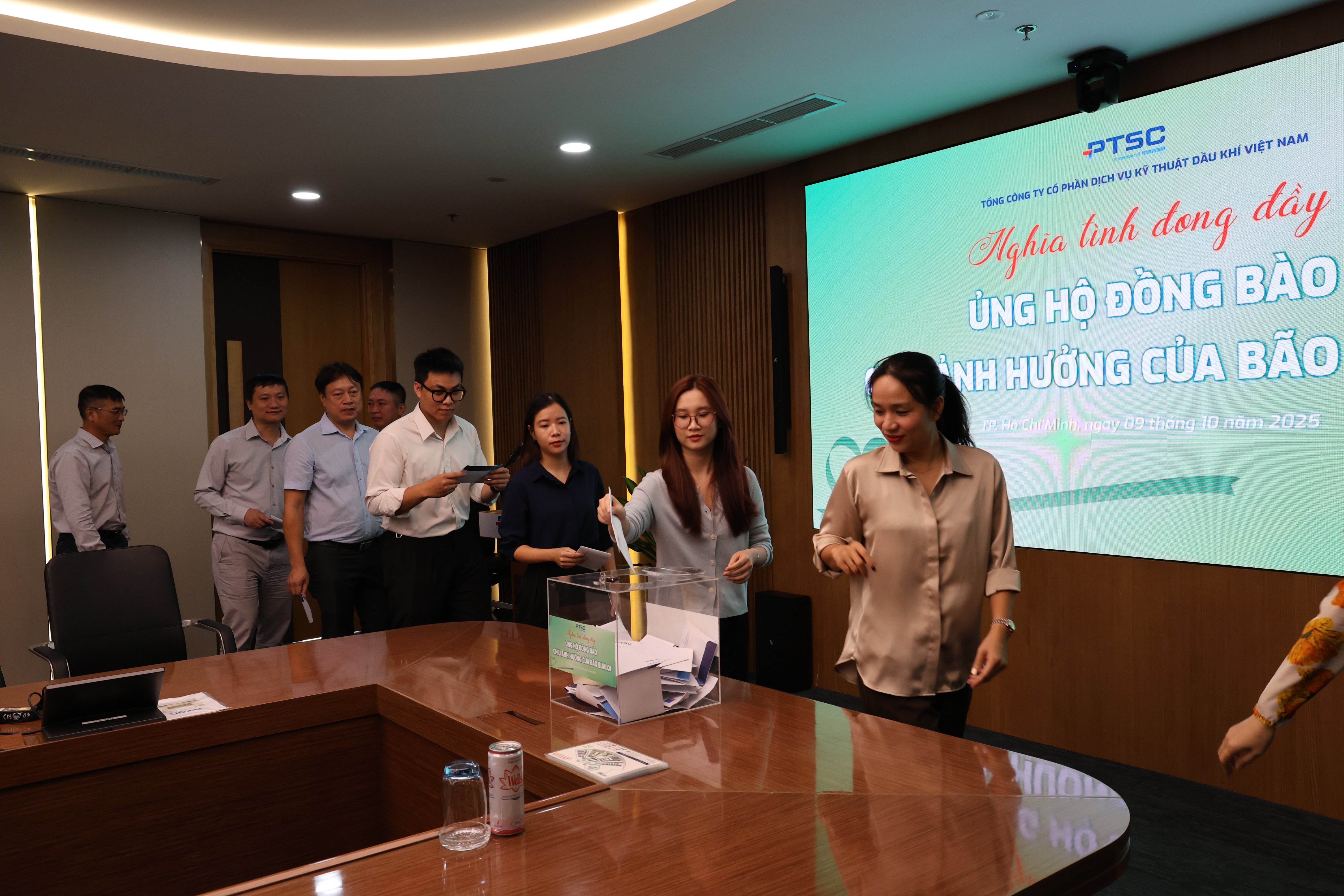 Som svar på oppfordringen fra Vietnam National Energy Industry Group deltok fagforeningen PTSC Corporation, fagforeningen i selskapets byrå og alle PTSC-ledere og ansatte aktivt i innsamlingsaksjonen for å støtte folk i de stormrammede områdene. Dette viste en ånd av gjensidig kjærlighet og hengivenhet, en fin tradisjon som har blitt bevart og spredt gjennom hele PTSCs utvikling. Innsamlingsarrangementet på selskapets hovedkvarter ble fullt ut besøkt av ledere, politiske og sosiale organisasjoner og et stort antall ledere og ansatte. I en enkel, men varm atmosfære inneholdt hvert bidrag, uansett hvor stort eller lite, et hjerte for å dele med folk i de stormrammede områdene, med et ønske om å bidra med en liten del for å hjelpe dem med å overvinne den vanskelige perioden og gjenoppbygge livene sine.