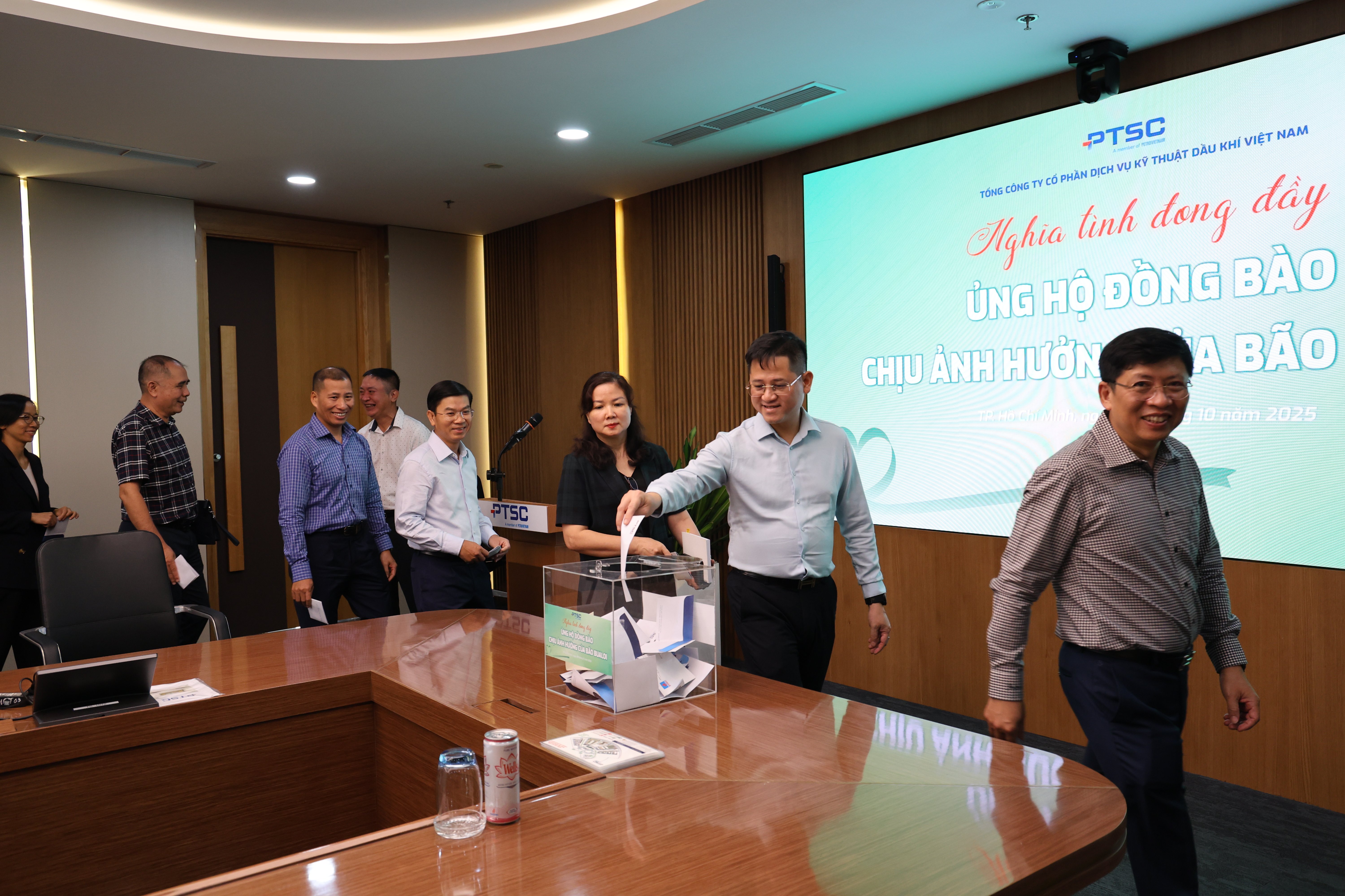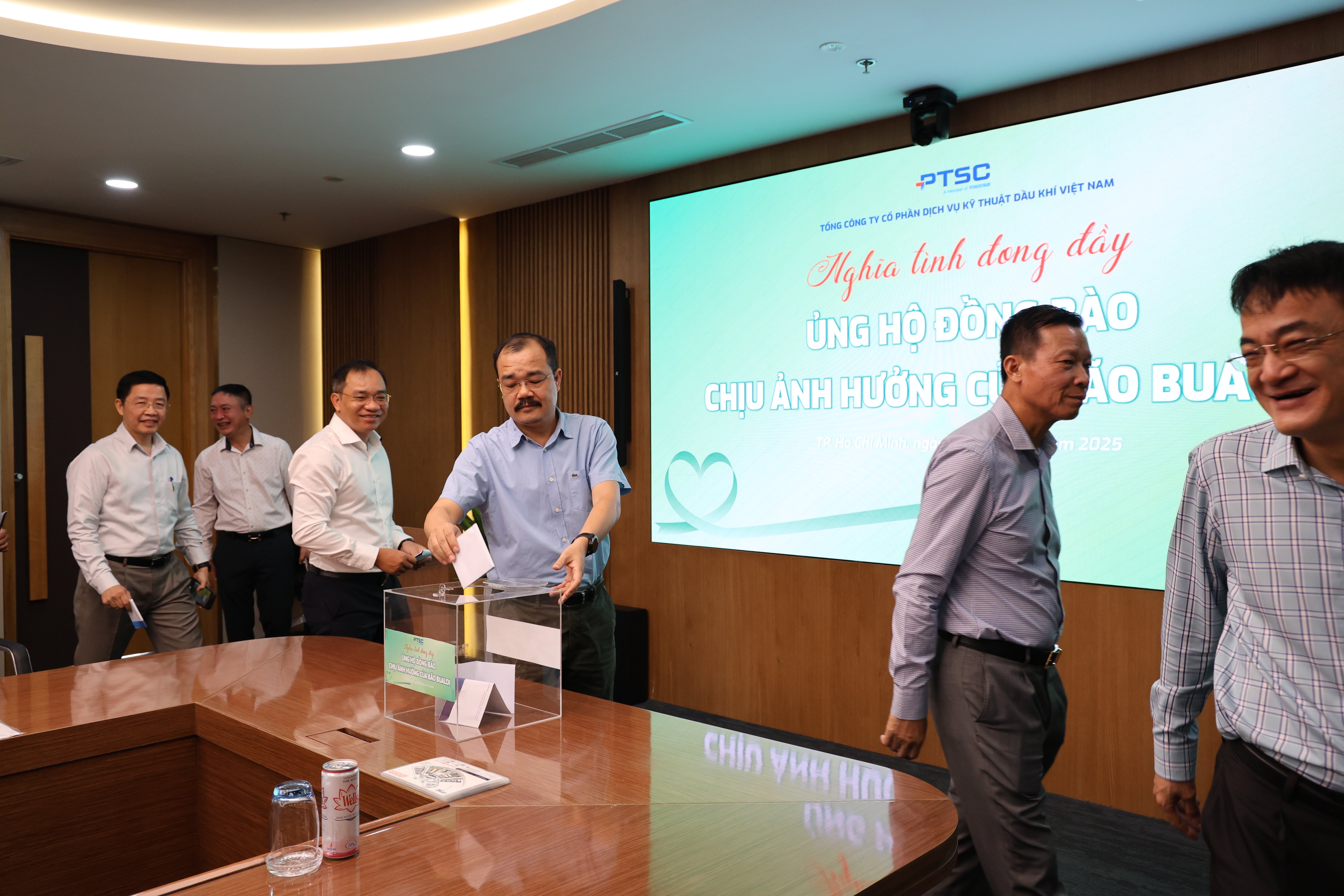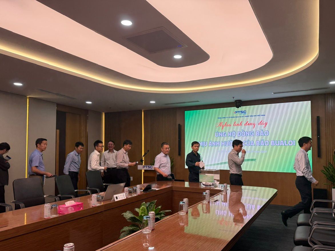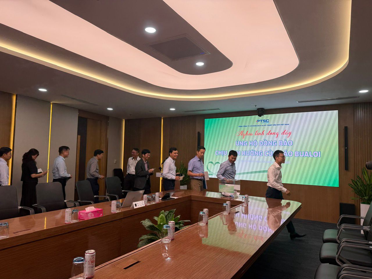 Som svar på oppfordringen fra Vietnam National Energy Industry Group deltok fagforeningen PTSC Corporation, fagforeningen i selskapets byrå og alle PTSC-ledere og ansatte aktivt i innsamlingsaksjonen for å støtte folk i de stormrammede områdene. Dette viste en ånd av gjensidig kjærlighet og hengivenhet, en fin tradisjon som har blitt bevart og spredt gjennom hele PTSCs utvikling. Innsamlingsarrangementet på selskapets hovedkvarter ble fullt ut besøkt av ledere, politiske og sosiale organisasjoner og et stort antall ledere og ansatte. I en enkel, men varm atmosfære inneholdt hvert bidrag, uansett hvor stort eller lite, et hjerte for å dele med folk i de stormrammede områdene, med et ønske om å bidra med en liten del for å hjelpe dem med å overvinne den vanskelige perioden og gjenoppbygge livene sine.