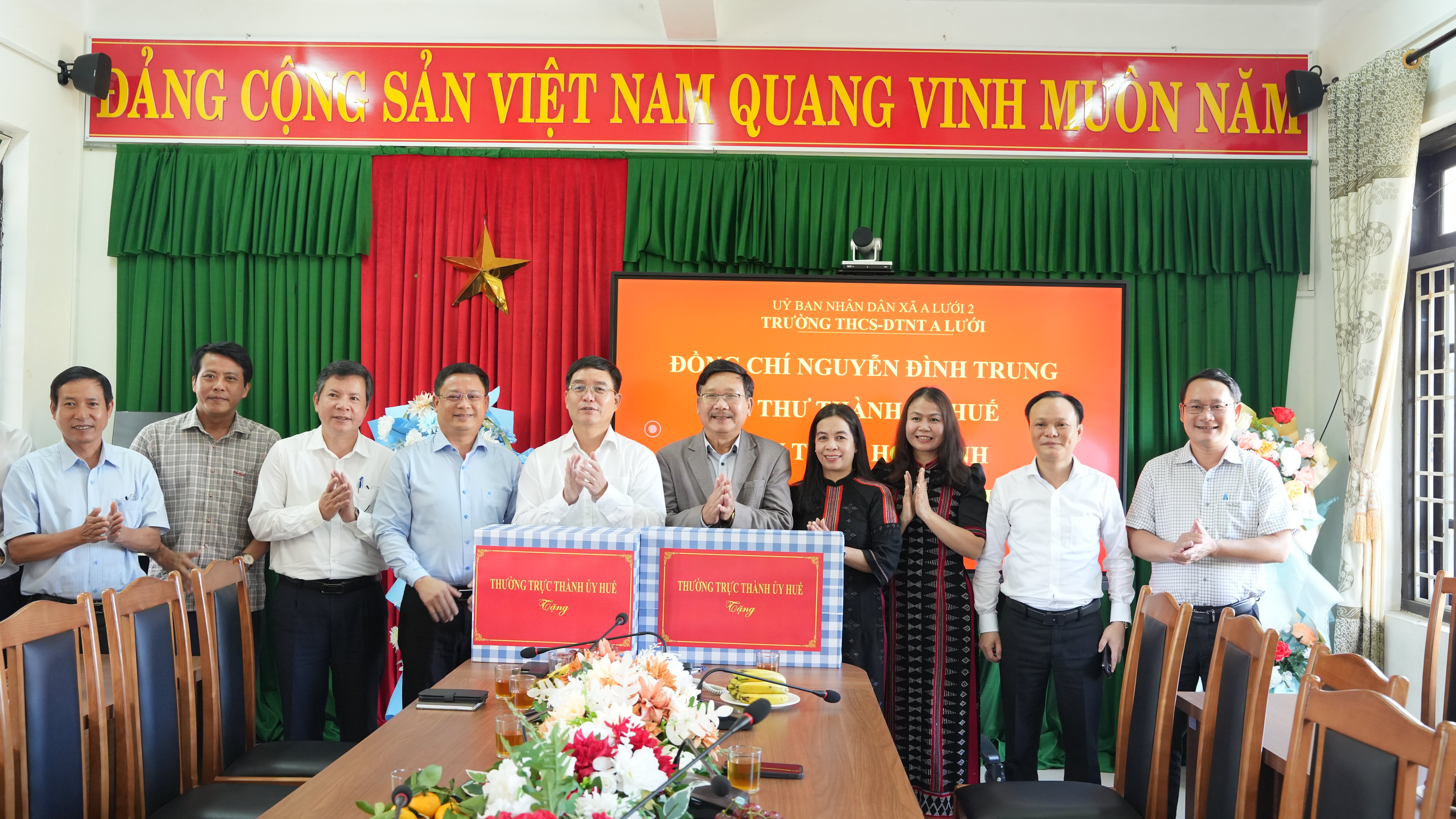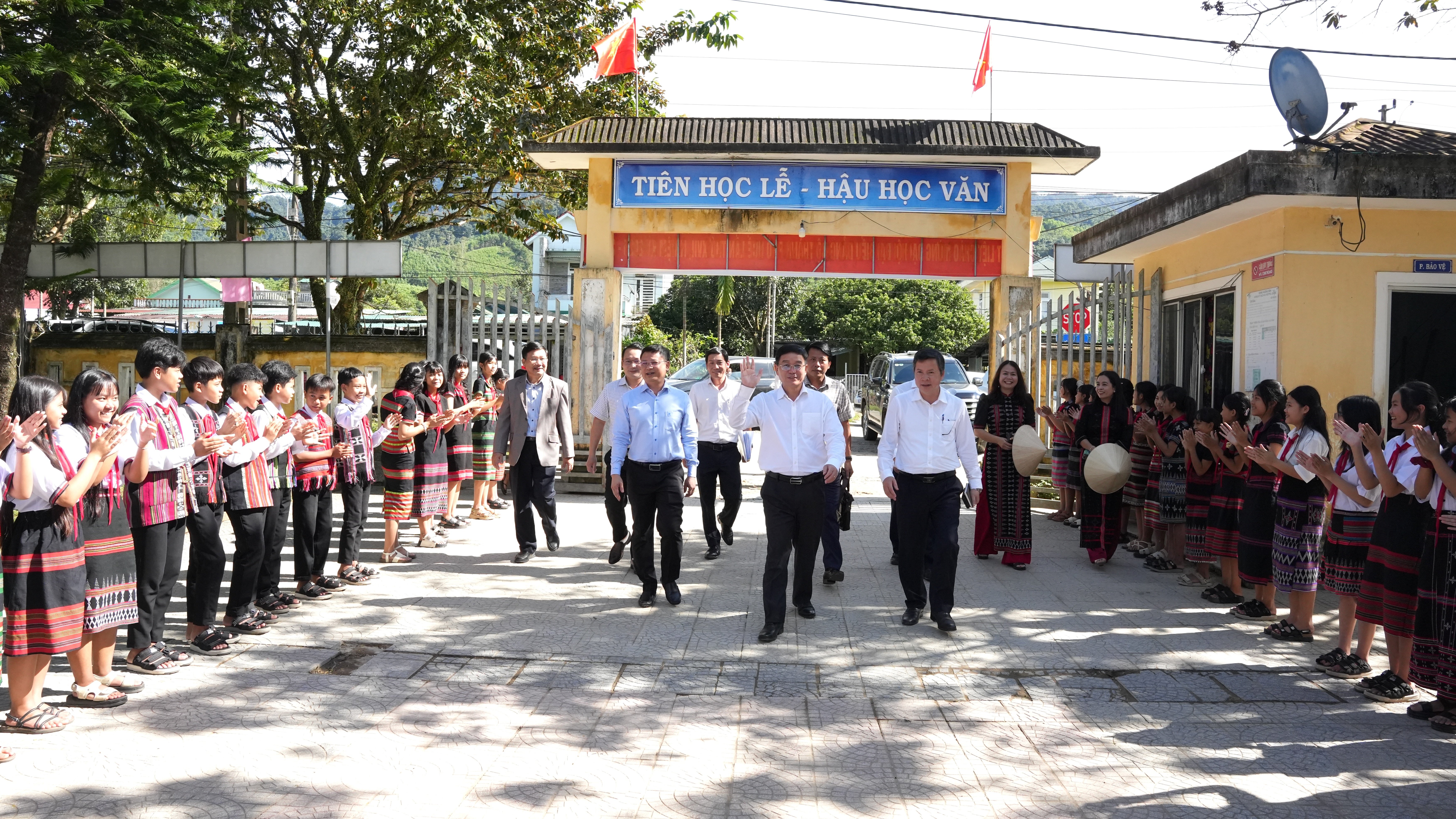 | Sekretær i bypartiets komité, Nguyen Dinh Trung, og arbeidsdelegasjonen besøkte A Luoi etniske internatskole |