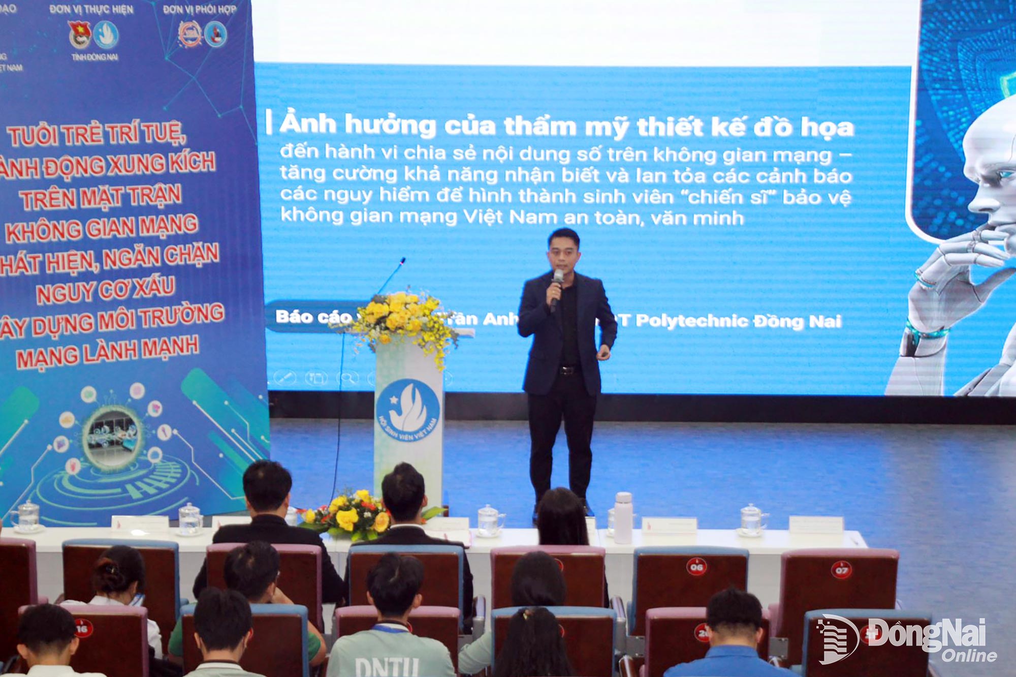 Master Le Phan Quang Huy, foreleser ved Dong Nai University of Technology, sa på konferansen: I tillegg til fordelene har cyberspace også mange potensielle risikoer, som krever bygging av en digital borgerstyrke med kunnskap, ferdigheter og mot, der studentene er pionerstyrken som direkte deltar i å beskytte et trygt, sunt og humant cyberspace.