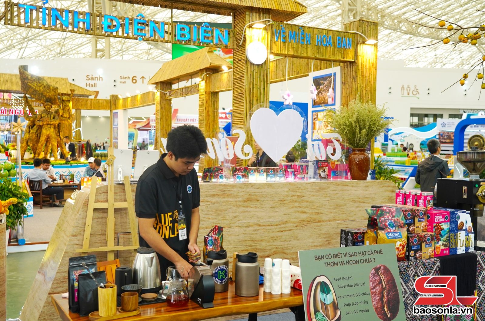 Blant 3000 fargerike boder skiller Son La-provinsens bod seg ut som et levende bilde med preg av de nordvestlige fjellene. Son La-boden er over 200 kvadratmeter bred, designet i bildet av Ta Xua-fjellene og -skogene, den sprø persimmonsesongen i Moc Chau ... vevd sammen med moderne og tradisjonelle elementer. Besøkende blir ønsket velkommen av de travle thaidansene og de fargerike brokadekostymene til det thailandske folket; kan delta i den tradisjonelle riskake-støpingopplevelsen til Mong-folket ... kan nyte kaffe, te og handle typiske landbruksprodukter fra provinsen som er til salgs ved boden.
