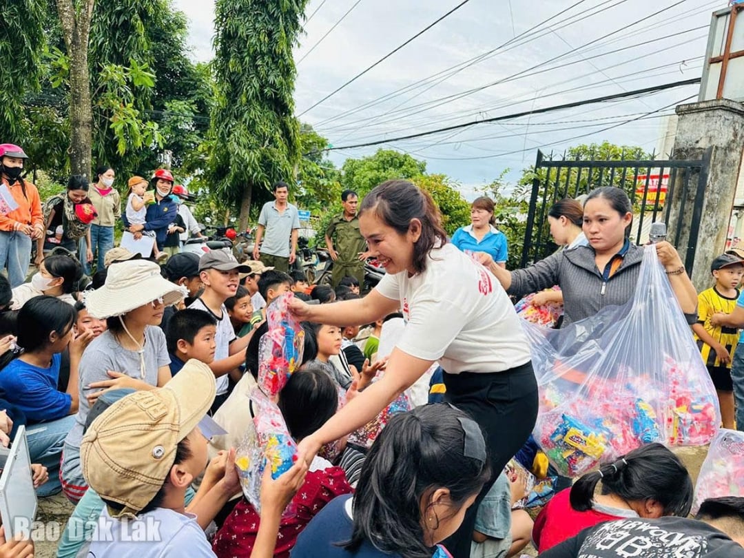 | Fru Nguyen Thi Thu deltar i organiseringen av aktiviteter i forbindelse med midthøstfestivalen for barn i landsbyen T'Lung i Ea Kar kommune. Foto levert av rollefiguren. |