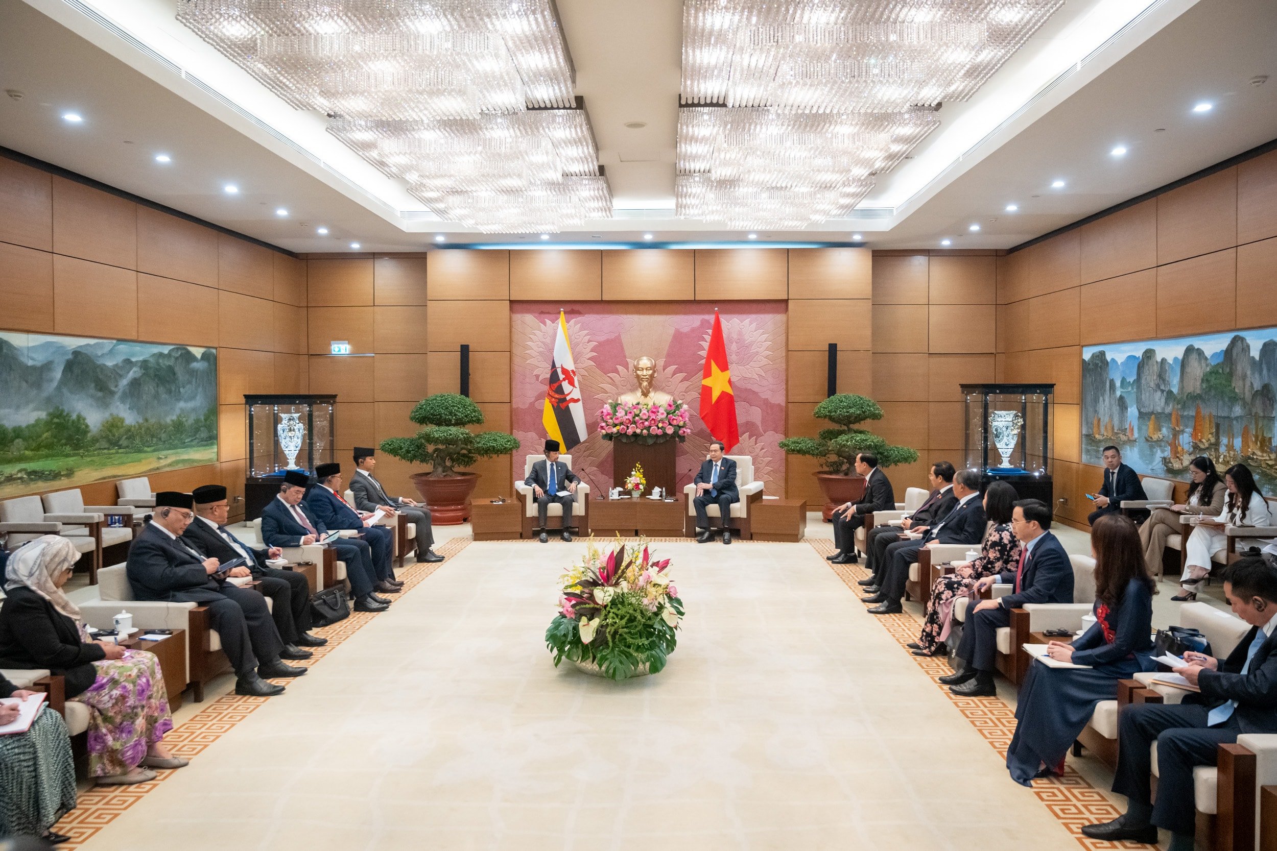 Nasjonalforsamlingens leder Tran Thanh Man var glad for å kunne ønske sultanen og Bruneis høytstående delegasjon velkommen til et besøk og samarbeid med den vietnamesiske nasjonalforsamlingen. Han satte stor pris på sultanens besøk, som fant sted på et tidspunkt hvor de to landene jobber med å implementere handlingsprogrammet for perioden 2023–2027 på en effektiv måte. Han mente at besøket vil gi ny drivkraft til å fremme det omfattende partnerskapet mellom Vietnam og Brunei, slik at det blir stadig mer substansielt og effektivt.
