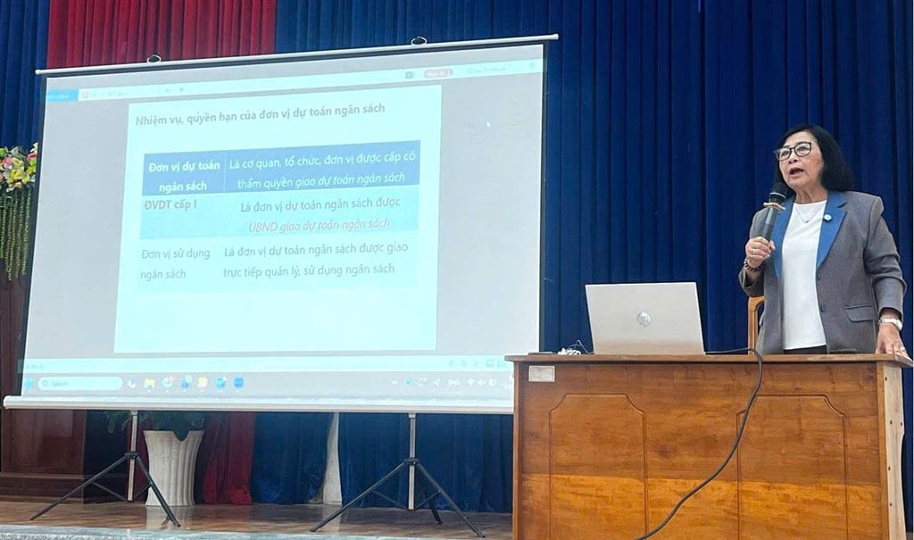 Innenfor rammen av programmet introduserte foreleseren nytt innhold i henhold til rundskriv nr. 24/2024/TT-BTC datert 17. april 2024 og rundskriv nr. 46/2025/TT-BTC datert 20. juni 2025 fra finansministeren som veileder regnskapssystemet for administrative og ikke-forretningsmessige enheter, og oppdaterte forskriftene i statsbudsjettloven som gjaldt fra 1. juli 2025 og tilhørende veiledende dokumenter om desentralisering av budsjettforvaltning på kommunenivå. Samtidig, formidle funksjoner, oppgaver og fullmakter innen finans- og planleggingsfeltet til spesialiserte etater under Folkekomiteen på kommunenivå i henhold til rundskriv nr. 57/2025/TT-BTC datert 25. juni 2025 fra Finansdepartementet, og veiledning om overføring og godkjenning av statlige økonomiske ressurser og budsjett etter omorganiseringen av den todelte lokale forvaltningsmodellen, og veiledning om tildeling, implementering av budsjettanslag og sluttregnskap for statsbudsjettet på kommunenivå i 2025. I tillegg gi veiledning om dataregistrering og drift av TABMIS-systemet (Treasury and Budget Management Information System).