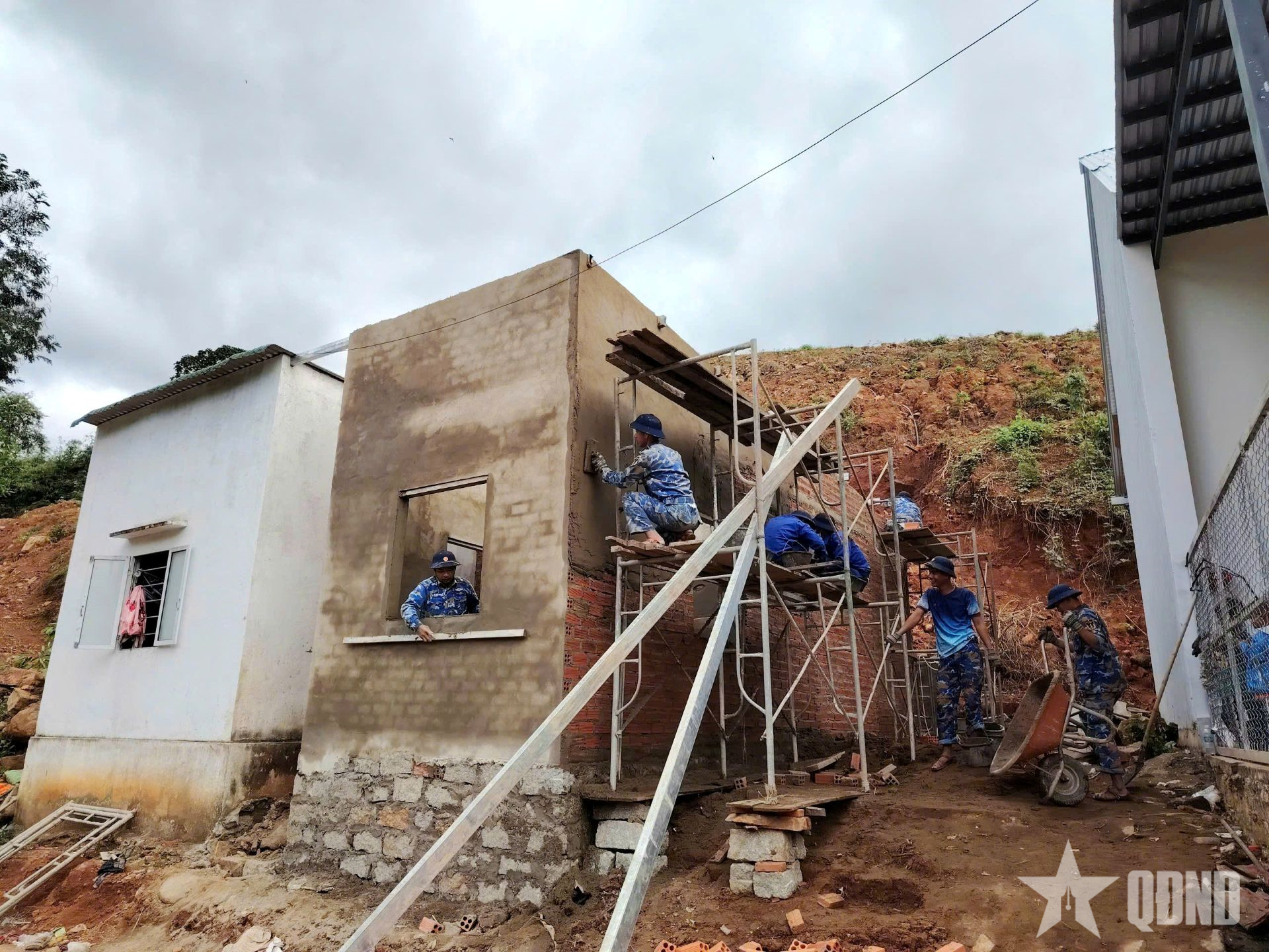 Etter 13 dager med rask bygging, der man har overvunnet vanskeligheter knyttet til vær, terreng og materialer, er de to husene som ble bygget for familiene til Cao Ca Yen og Pham Ngoc Binh nå ferdigstilt med tanke på grunnstrukturen, og det legges for tiden fliser på veggene. På grunn av det farlige, kuperte terrenget bak Cao Ca Yens hus, rådet og foreslo Brigade 101 proaktivt de lokale myndighetene å bygge ytterligere støttemurer, støpe betongsøyler og forsterke huset for å sikre sikkerhet mot risikoen for jordskred.