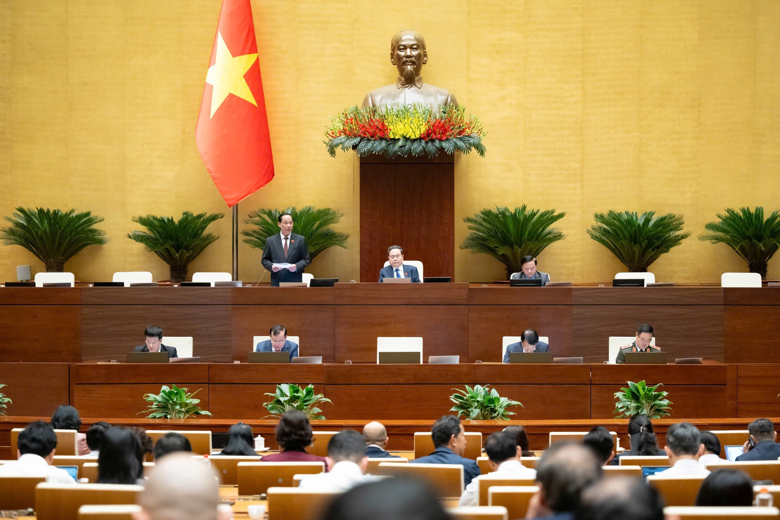 Minister for offentlig sikkerhet, Luong Tam Quang, forklarte og avklarte en rekke problemstillinger av interesse for representanter i nasjonalforsamlingen og sa at produktgruppene som er oppført i punkt a, paragraf 2, artikkel 45a i lovutkastet er viktige produktgrupper som er spesifikt identifisert av kompetente myndigheter og som kreves for at det nasjonale sikkerhetsindustrielle komplekset skal investere i og utvikle frem til 2030, med en visjon frem mot 2045.