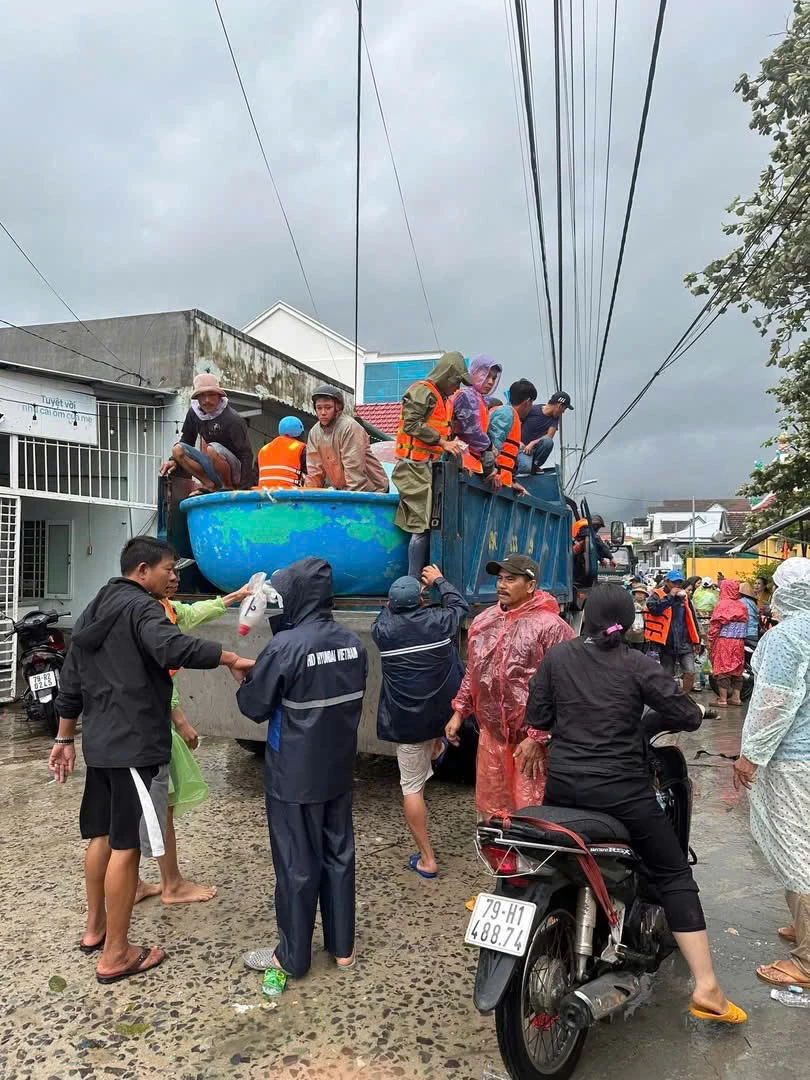 Herr Nguyen Van Thach (24 år gammel) i boliggruppen My Luong knyttet tauet for å holde kurven fast, og sa: «Vi er fiskere, vi er vant til det. Når vi vet at folk sitter fast, roper vi på hverandre for å samles, selv om ingen roper på oss, løper vi til dem.» Da han ble spurt om hvor mange tilfeller han hadde reddet i dag, ristet han på hodet, smilte og sa: «Det er så mange, jeg kan ikke huske alle. Etter å ha brakt folk til et trygt sted, drar vi raskt til et annet sted for å redde dem.»
