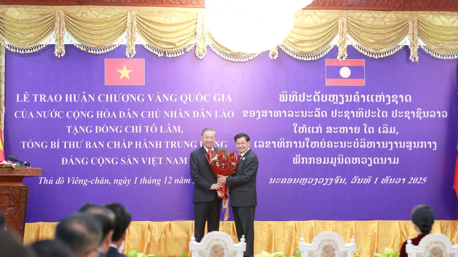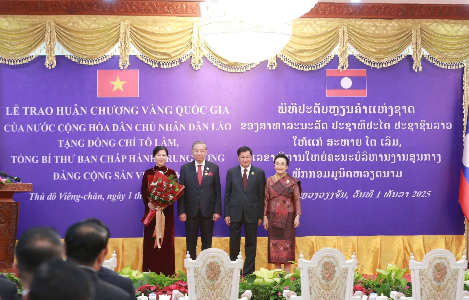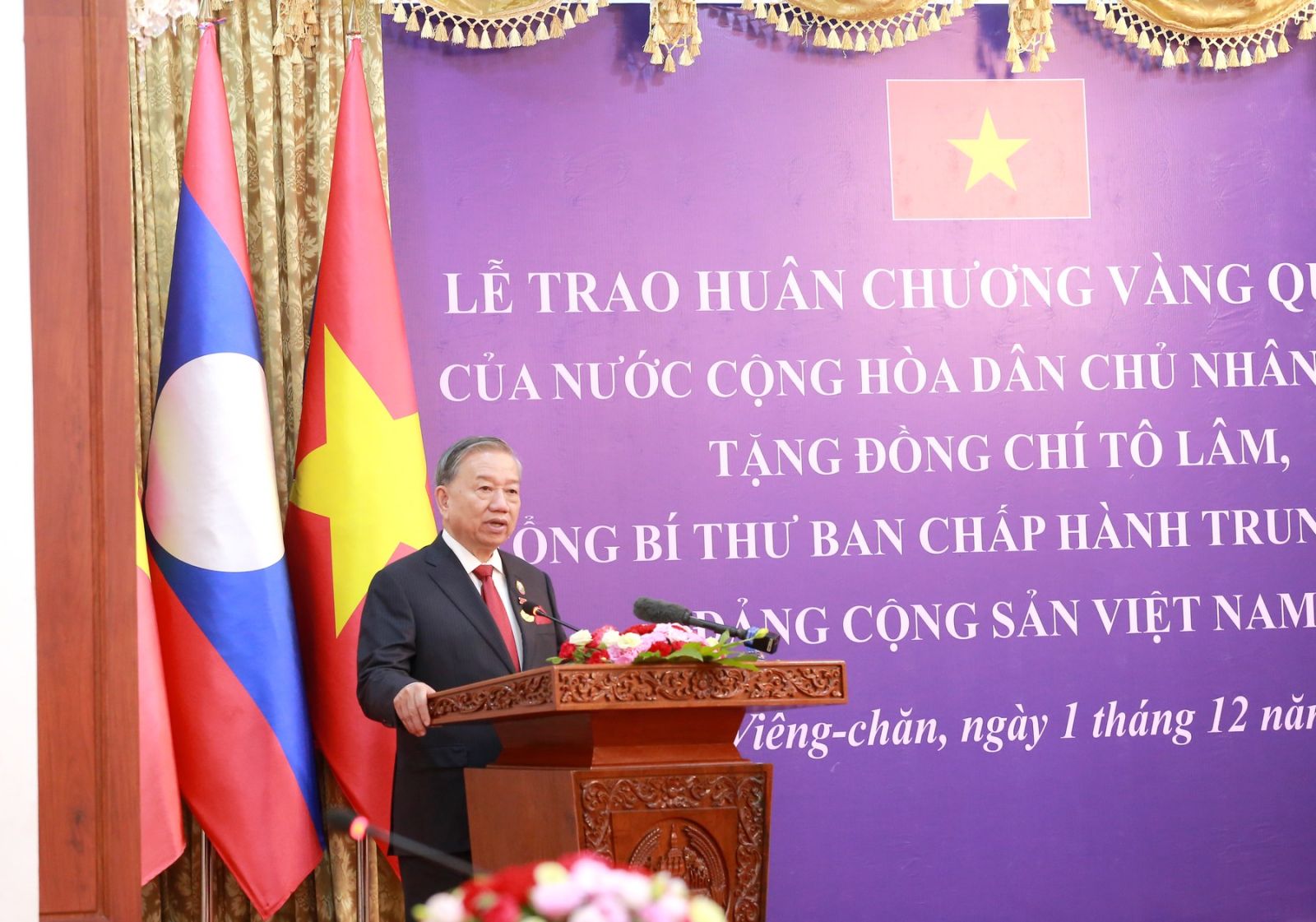 Kilde: https://dangcongsan.org.vn/tin-hoat-dong/tong-bi-thu-to-lam-nhan-huan-chuong-vang-quoc-gia-cua-nha-nuoc-lao.html