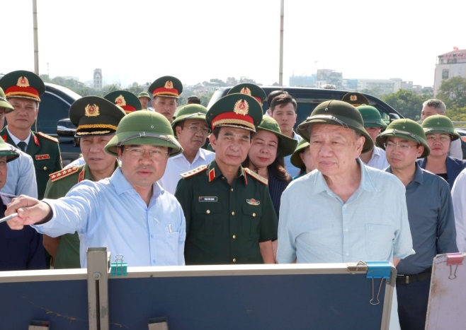 Generalsekretær To Lam besøkte og overrakte gaver til representanter for husholdninger rammet av stormer og flom og væpnede styrker som støtter folk i å overvinne skadene, og delte folks vanskeligheter og tap. Han oppfordret folk til å gjøre en innsats for å overvinne skadene slik at livet snart kan vende tilbake til det normale. Generalsekretæren roste også solidariteten, proaktiviteten, innsatsen og bestrebelsene til partikomiteen, regjeringen, de væpnede styrkene og folket i Thai Nguyen-provinsen i arbeidet med å forebygge, bekjempe og overvinne konsekvensene av storm nr. 11. Samtidig ba han lokale myndigheter og funksjonelle etater om at de aktivt og proaktivt iverksetter støttetiltak for å raskt overvinne skadene, og hjelper berørte husholdninger med å stabilisere livene sine og gjenopprette produksjon og forretningsvirksomhet.