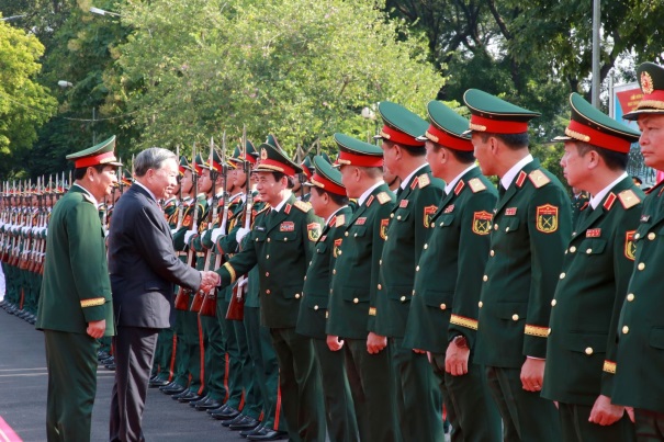 Velkomstseremoni for generalsekretær To Lam, sekretær for den sentrale militærkommisjonen ved Militærregion 1-kommandoen