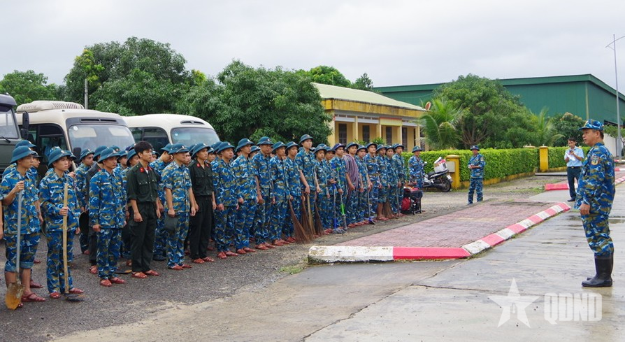 Om morgenen 23. november fortsatte Luftforsvarets offisersskole å mobilisere 120 offiserer, elever og soldater til stedene: Ngoc Hiep barneskole, Green Star barnehage og landsbyen Phu An Nam for å rydde opp og restaurere fasiliteter, hjelpe skolene med å stabilisere undervisning og læring snart, og folk med å stabilisere boligforholdene sine snart.