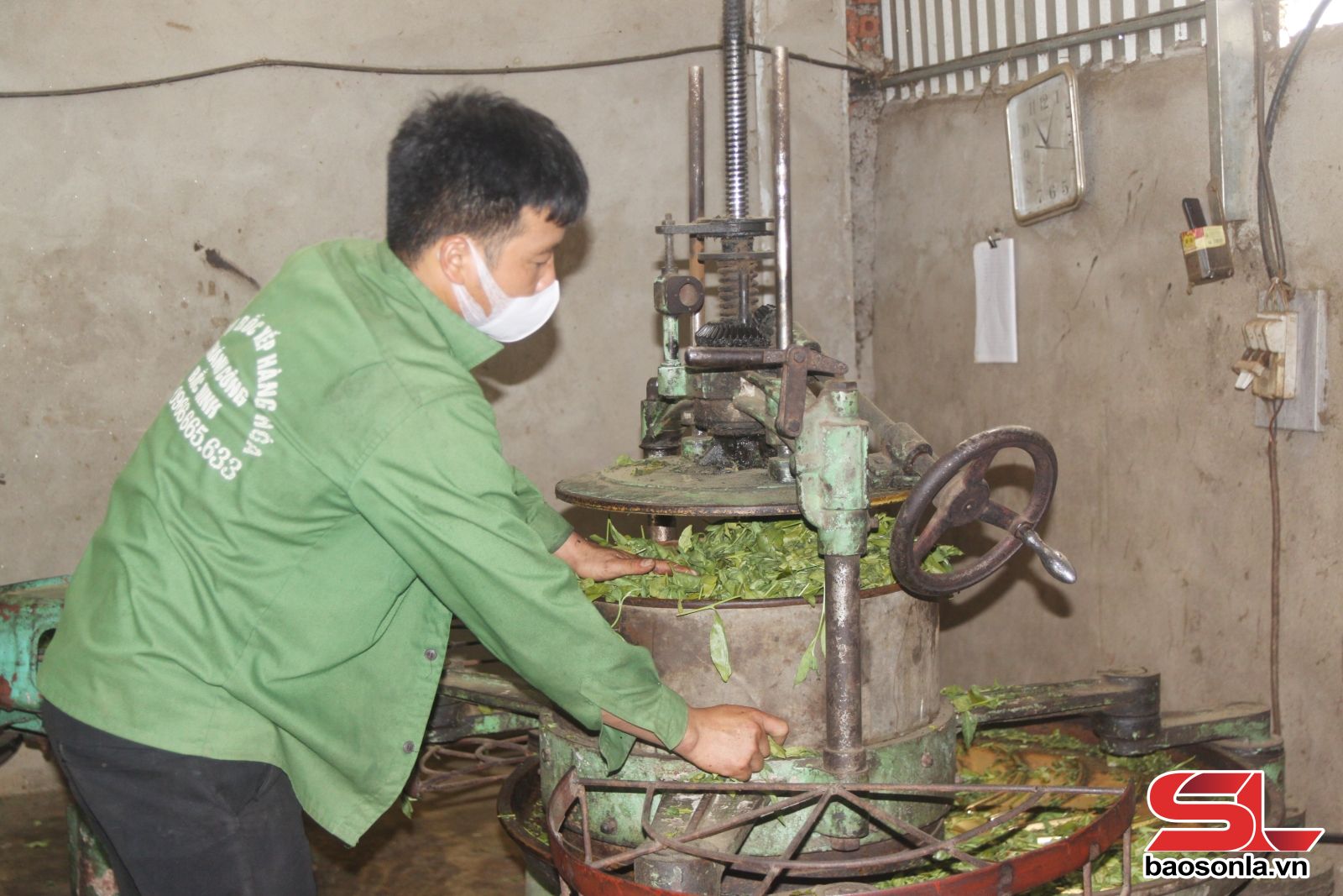 Arbeidere i Son La Tea Joint Stock Company i Phieng Cam kommune bearbeider te.