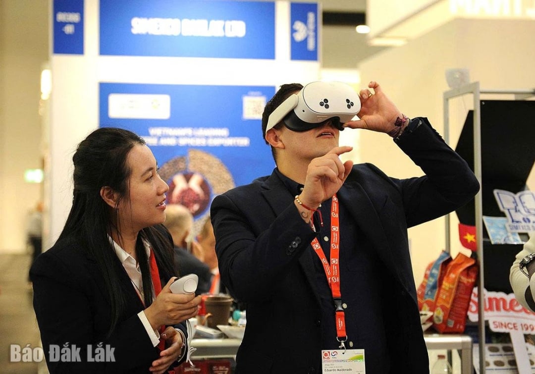 | Simexco DakLak introduserte VR 360 (virtuell virkelighet)-opplevelsen for besøkende på den internasjonale messen Anuga 2025 som nylig ble holdt i Tyskland. Foto: Levert av Simexco DakLak |
