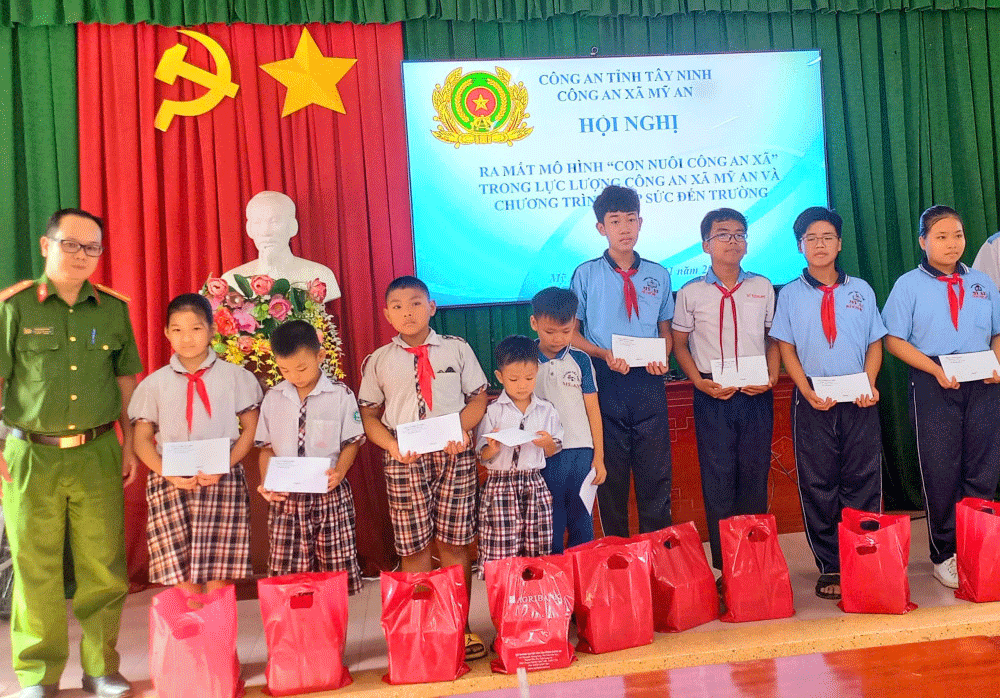 For å bidra til å støtte vanskeligstilte barn i området slik at de får betingelser for omfattende utvikling, og samtidig forhindre at barn blir misbrukt og bryter loven, undersøkte, valgte og introduserte My An kommunepoliti to saker som er kvalifisert til å delta i modellen «Adopterte barn av kommunepolitiet», inkludert Duong Nguyen Huynh Trang og Nguyen Huynh Ngoc An.