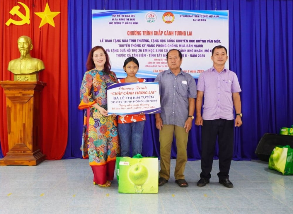 Spesielt ble et veldedighetshus verdt 70 millioner VND gitt til Kim Phuong Anh, en student med ekstremt vanskelige kår i Tan Bien kommune. Av dette støttet Hong Loi Nam Company Limited 50 millioner VND, mens kommunens bondeforening mobiliserte et tilsvarende beløp på 20 millioner VND. Den totale verdien av gaven og huset var 139 millioner VND, støttet av Hong Loi Nam Company Limited.