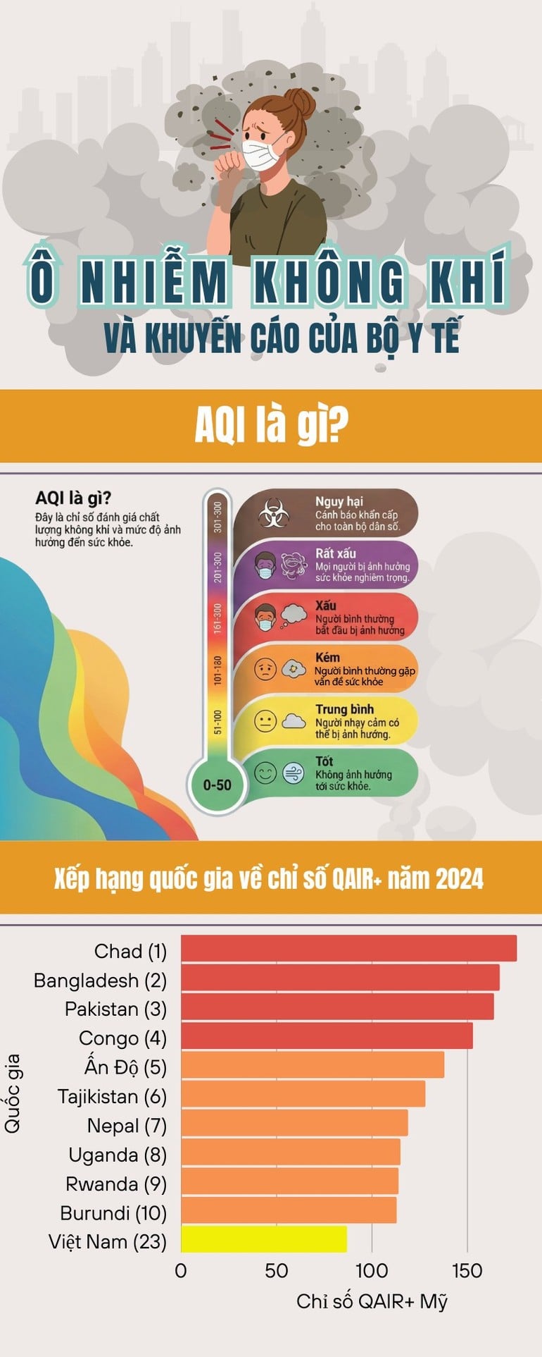 Để chủ động bảo vệ sức khỏe người dân trước những ảnh hưởng có hại của ô nhiễm không khí, Cục Phòng bệnh (Bộ Y tế) đã xây dựng khuyến cáo phòng, chống ảnh hưởng của ô nhiễm không khí tới sức khỏe.