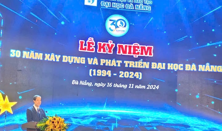 Sáng 16/11, tại Nhà hát Trưng Vương, Đại học Đà Nẵng long trọng tổ chức Lễ Kỷ niệm 30 năm xây dựng và phát triển (1994-2024). Tham dự buổi Lễ có đồng chí Nguyễn Kim Sơn, Ủy viên Ban Chấp hành Trung ương Đảng, Bộ trưởng Bộ Giáo dục và Đào tạo (GD&ĐT); các đồng chí Uỷ viên Trung ương Đảng và đại diện lãnh đạo các bộ, ban, ngành, cơ quan Trung ương, các địa phương, các cơ quan ngoại giao và tổ chức quốc tế; lãnh đạo các đại học, trường đại học, học viện, doanh nghiệp đối tác; các cơ quan báo chí Trung ương và địa phương; các thầy, cô nguyên lãnh đạo, lãnh đạo Đại học Đà Nẵng và các trường thành viên, đơn vị thuộc và trực thuộc qua các thời kỳ; các thế hệ cựu sinh viên, sinh viên, học viên của Đại học Đà Nẵng.