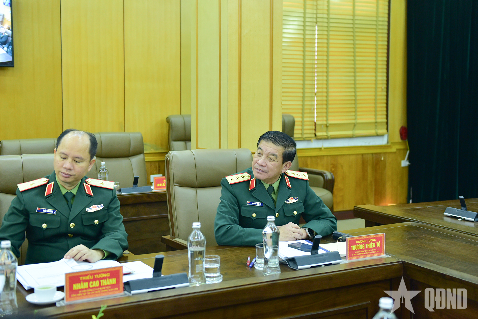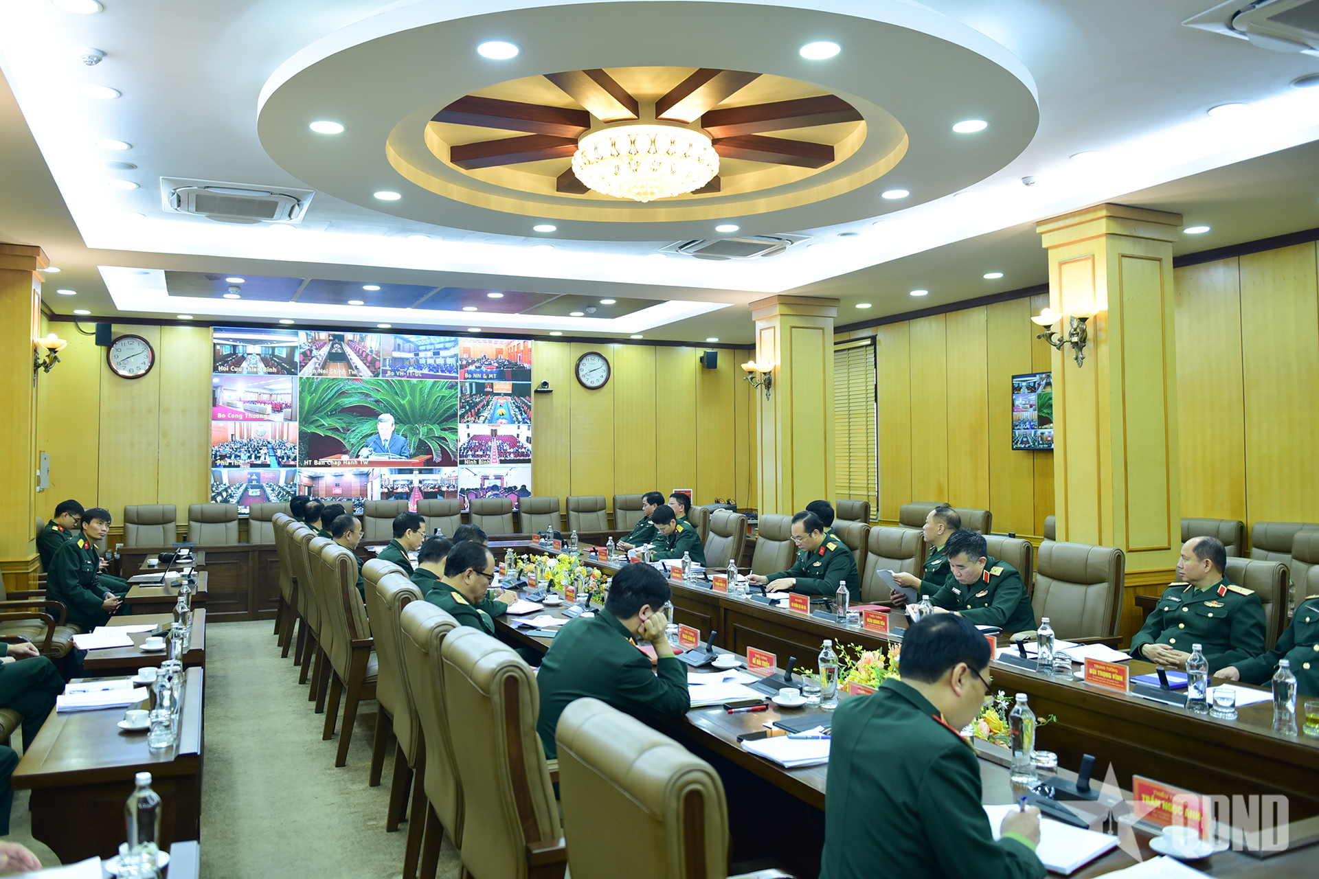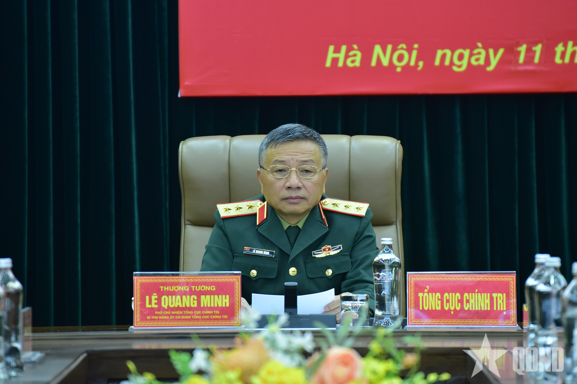 | Thượng tướng Lê Quang Minh chủ trì tại điểm cầu Tổng cục Chính trị. |