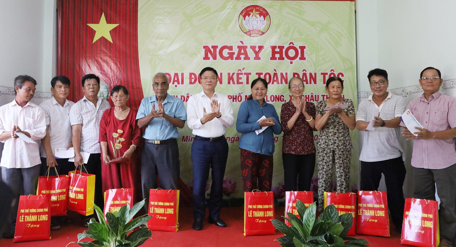 Tham dự ngày hội, Phó Thủ tướng Chính phủ Lê Thành Long tặng quà Ban Công tác Mặt trận khu phố Minh Long; tặng quà 10 hộ gia đình chính sách tiêu biểu trên địa bàn khu khố Minh Long; lãnh đạo tỉnh tặng quà 10 hộ nghèo, cận nghèo; Đảng ủy xã Châu Thành tặng quà 5 hộ cận nghèo trên địa bàn khu phố Minh Long.