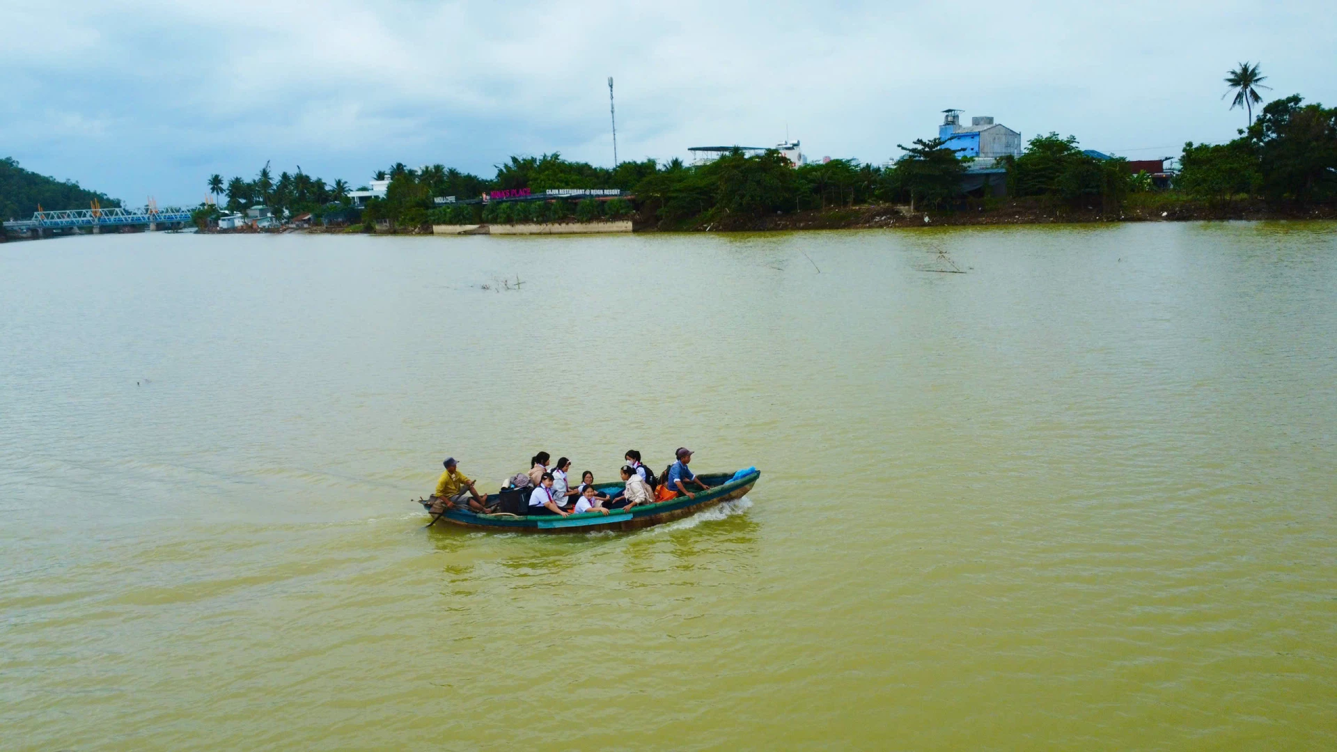 | Ghe chở học sinh từ bờ Bắc qua bờ Nam sông Cái |