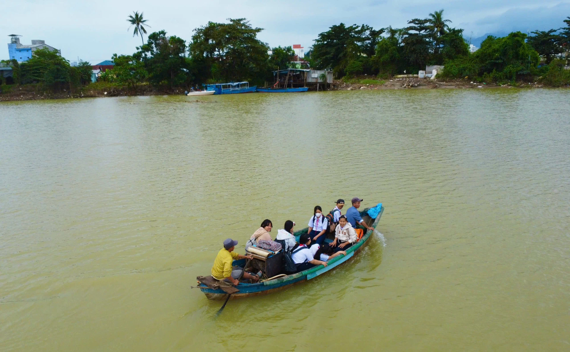 | Mỗi lần ghe chở được gần 10 học sinh. |
