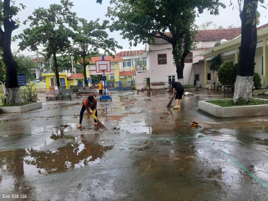 Pan Tran Huu Liem, dyrektor szkoły średniej Hoa Phong (gmina Cu Pui), poinformował, że szkoła znajduje się 1,7 m niżej niż poziom drogi, przez co niektóre sale lekcyjne są zalane od wielu dni. Jednak dzięki wczesnej inicjatywie szkoła skoordynowała działania z lokalnymi władzami, aby z wyprzedzeniem przenieść sprzęt dydaktyczny na wyżej położony teren, zapewniając jego sprawne działanie po powodzi. Szkoła współpracuje z Radą Rodziców i lokalnymi władzami, aby poinformować i zachęcić uczniów do powrotu do szkoły 24 listopada.
