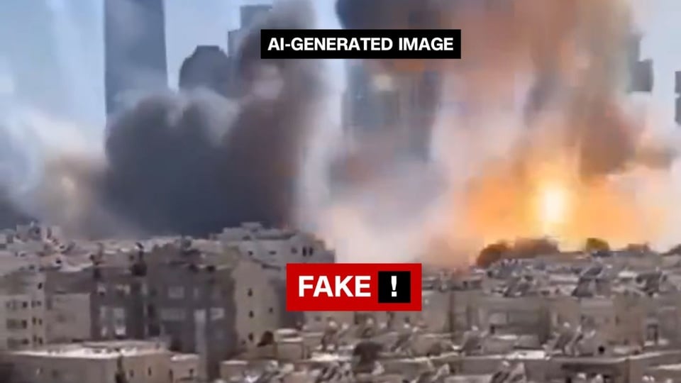 Miliony razy udostępniono liczne fałszywe filmy przedstawiające konflikt USA-Izrael z Iranem. Zdjęcie: CNN. |