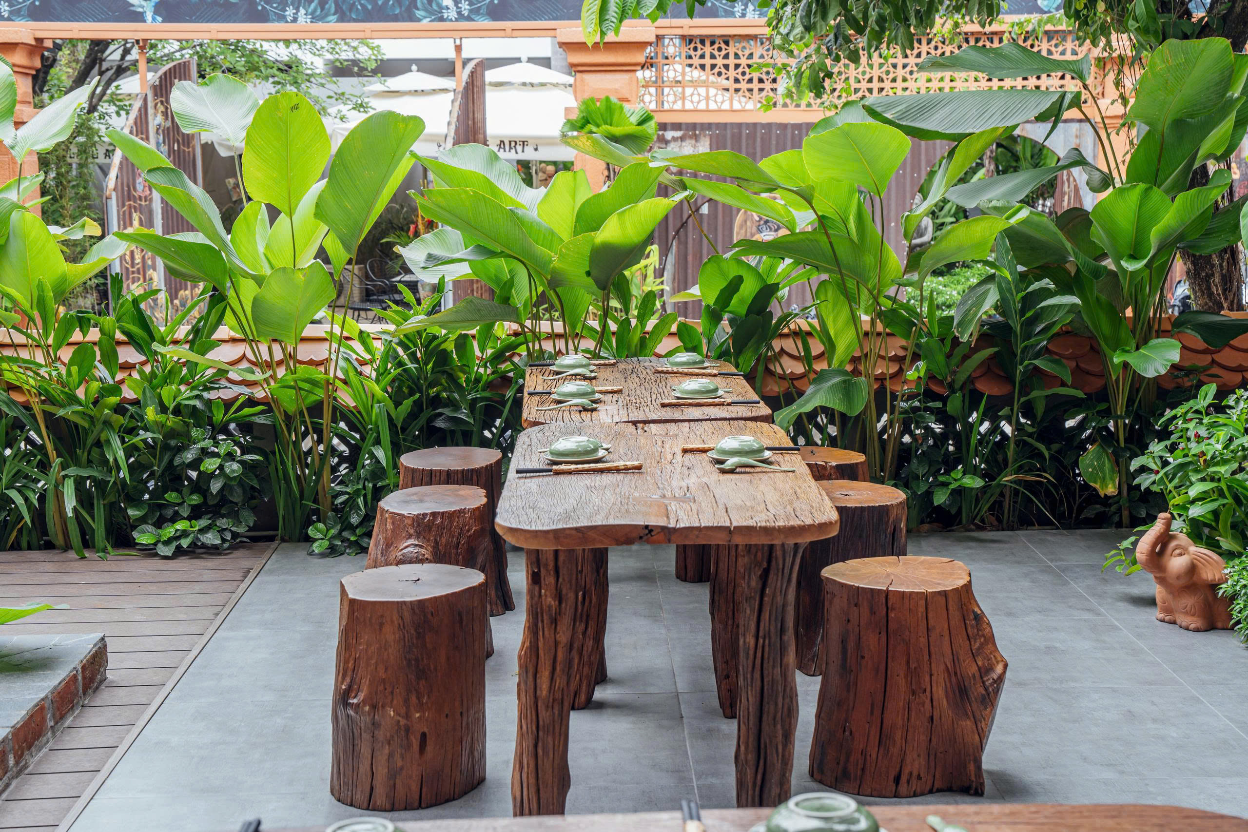 Restauracja położona pod chłodnymi, zielonymi drzewami w dzielnicy Thao Dien
