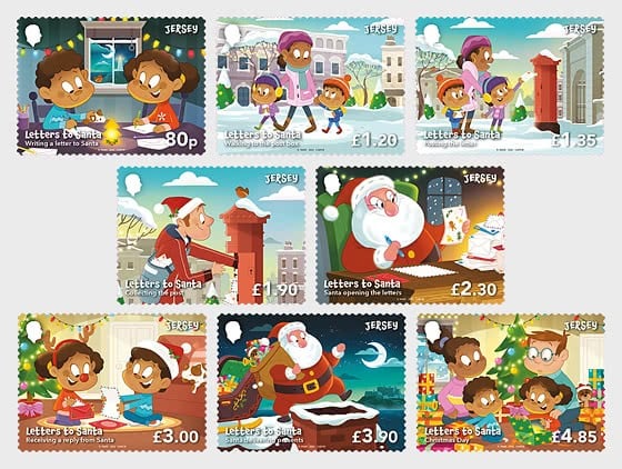 Na Jersey tradycja pisania i odbierania listów od Świętego Mikołaja jest zawsze pielęgnowana. Poczta Jersey co roku dba o to, aby każdy list wysłany przez dzieci do Świętego Mikołaja otrzymał odpowiedź z podziękowaniami za życzenia i pozdrowienia. Każdy znaczek w serii przedstawia inny etap pisania, wysyłania i odbierania listów, a na ostatnim znaczku widnieje napis „Christmas Day”, symbolizujący radość ze spotkań i dzielenia się w czasie świąt.