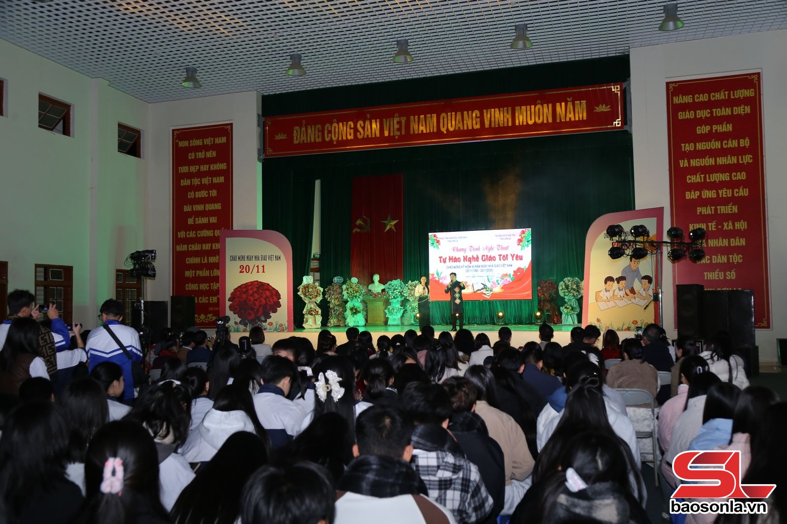 Program obejmuje 14 wyjątkowych występów artystycznych, przygotowanych i wykonanych przez pracowników, aktorów Prowincjonalnego Centrum Kulturalno-Kinowego oraz uczniów Prowincjonalnego Internatu dla Mniejszości Etnicznych. Każdy występ ma swój własny koloryt, wychwalając tradycję „szacunku dla nauczycieli”, oddając hołd oddanym nauczycielom, niestrudzenie przekazującym wiedzę kolejnym pokoleniom uczniów. Uczniowie wykonali wiele znanych piosenek, takich jak „Gieo chu tren deo cao”, „Son La mai dat tinh yeu”, „Co giao ban em”, „Nguoi thay”… radośnie i niewinnie, tworząc znaczącą muzyczną przestrzeń, która przyciągnęła liczną rzeszę pracowników, nauczycieli i uczniów, aby się dobrze bawić i wznosić okrzyki.