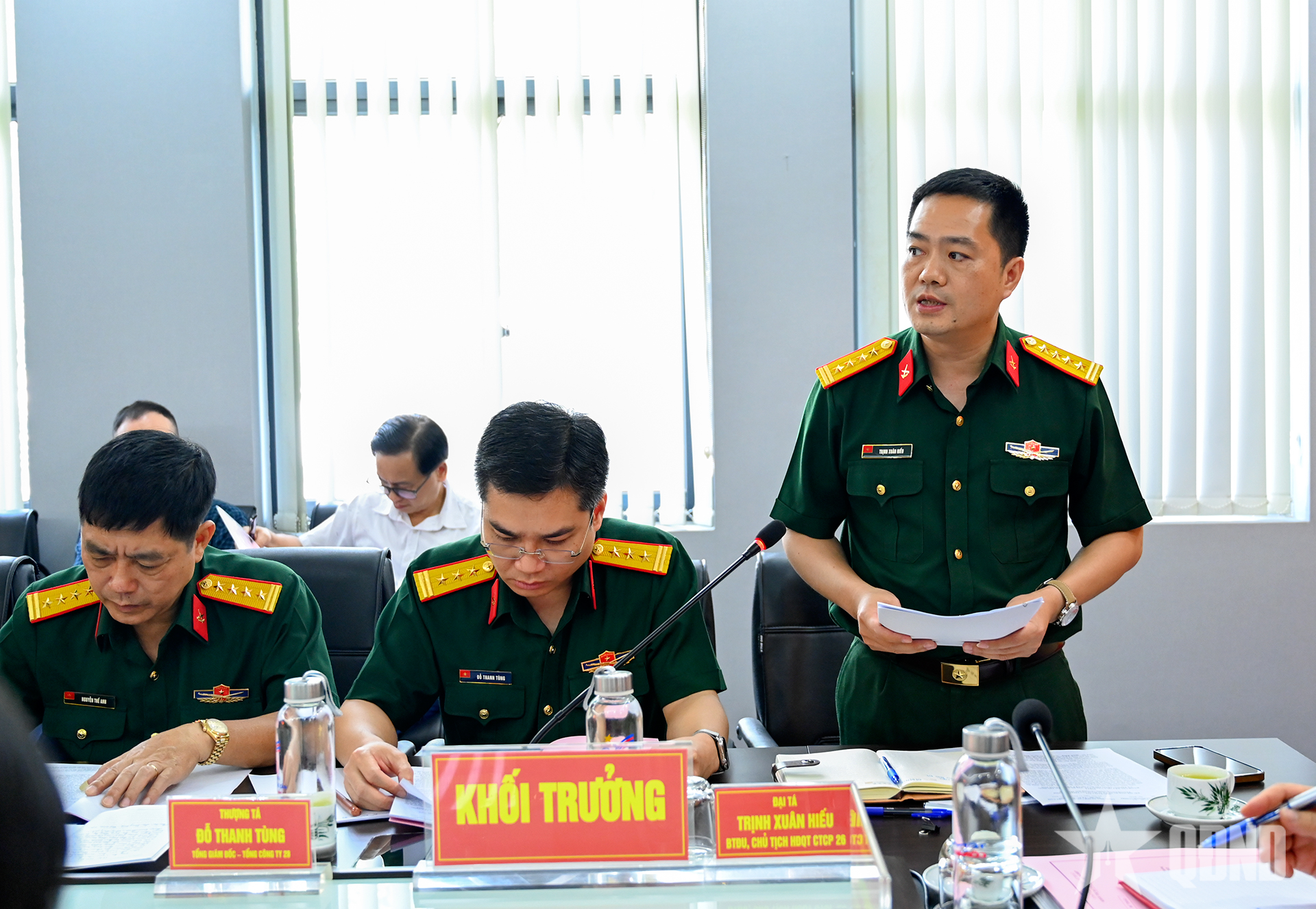 Na konferencji przemawiał pułkownik Trinh Xuan Hieu, przewodniczący rady dyrektorów spółki akcyjnej 26 - kierownik bloku emulacji przedsiębiorstw Departamentu Głównego Logistyki i Inżynierii. |